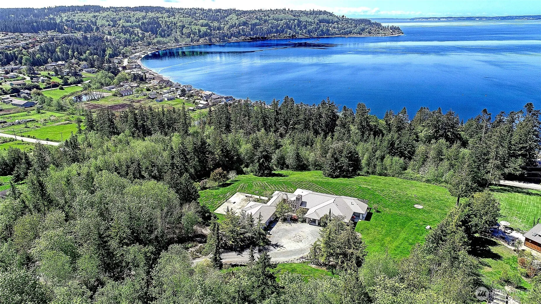 Truly One of a Kind, Architecturally Priceless Estate on 5.75 acres. Maximum Privacy Boasting a Vast Perspective of all Camano has to offer. Views of Utsalady & Skagit Bay, Sunsets & Wildlife that comes to your door. This Custom built home by Holbeck Construction is Located on Camano’s north end only 15 Min to 1-5. Features Concrete Radiant Floors Throughout, Gorgeous Slab Granites, Travertine, Impressive stone Fireplace with Natural Gas. Stunning Window Package, Thoughtfully Designed Gourmet Kitchen with Dacor range, Custom Cabinetry, Soaking Tub in Master with views. Covered Walkway to Guest Quarters in Garage with full bathroom and Bedroom. Outdoor is a parklike setting with Fruit Trees, Trails, Sports Court. Living area on One Level.
