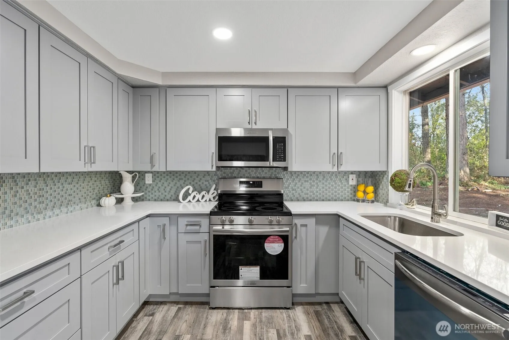 Charming one-level home on 3 private, serene ACRES. It’s meticulously updated incl: kitchen w/ new STACKED CABINETS, Fabulous QUARTZ countertops, MOSAIC TILE backsplash, FARM SINK, & high-end SS Appliances, incl. Refrigerator. Baths shine w/ new vanities, QUARTZ counters, LED mirrors, extensive lg CERAMIC TILE, & Primary bath w/GLASS DOOR & elegant MOSAIC & extensive CERAMIC tiles. No carpet—only durable LVP & tile flooring. New doors (garage too), insulation in the crawl space, light fixtures, HOTWATER TANK & fresh paint inside & out. Plenty of sunlight, No HOA! A true gem in a picturesque setting w/room for RV & shops, near Tumwater, Lacey, Olympia, Chehalis-Western Trail, & Offut Lake fishing & recreation. No GPS—Please just put Bronson.
