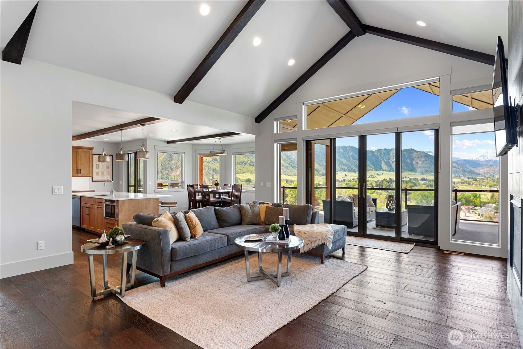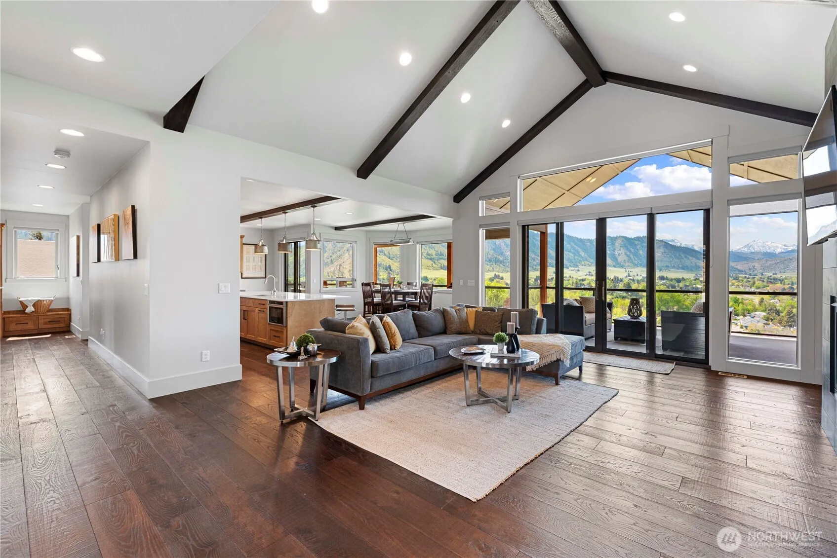 Stunning ONE OF A KIND Van Lith custom built home in desirable Cashmere. Panoramic mountain & valley views upon entry & the views continue throughout both levels w/an abundance of natural light. Chef’s kitchen w/sprawling Quartz counters/island, rich maple cabinets, & designer steel lighting. Soaring vaults on main w/exposed beams. Primary Bedroom on main has access to the deck, tile shower, & lg walk-in closet. Second bedrooom on main w/ full ensuite bathroom & soaking tub. Concrete floors down & additional two lg bedroom en suites, & bonus area, ample closets & storage. Outdoor living on both levels w/expansive decks to take in the views. Professionally designed yard w/impressive stone waterfall. Att 3 car garage. This is it!
