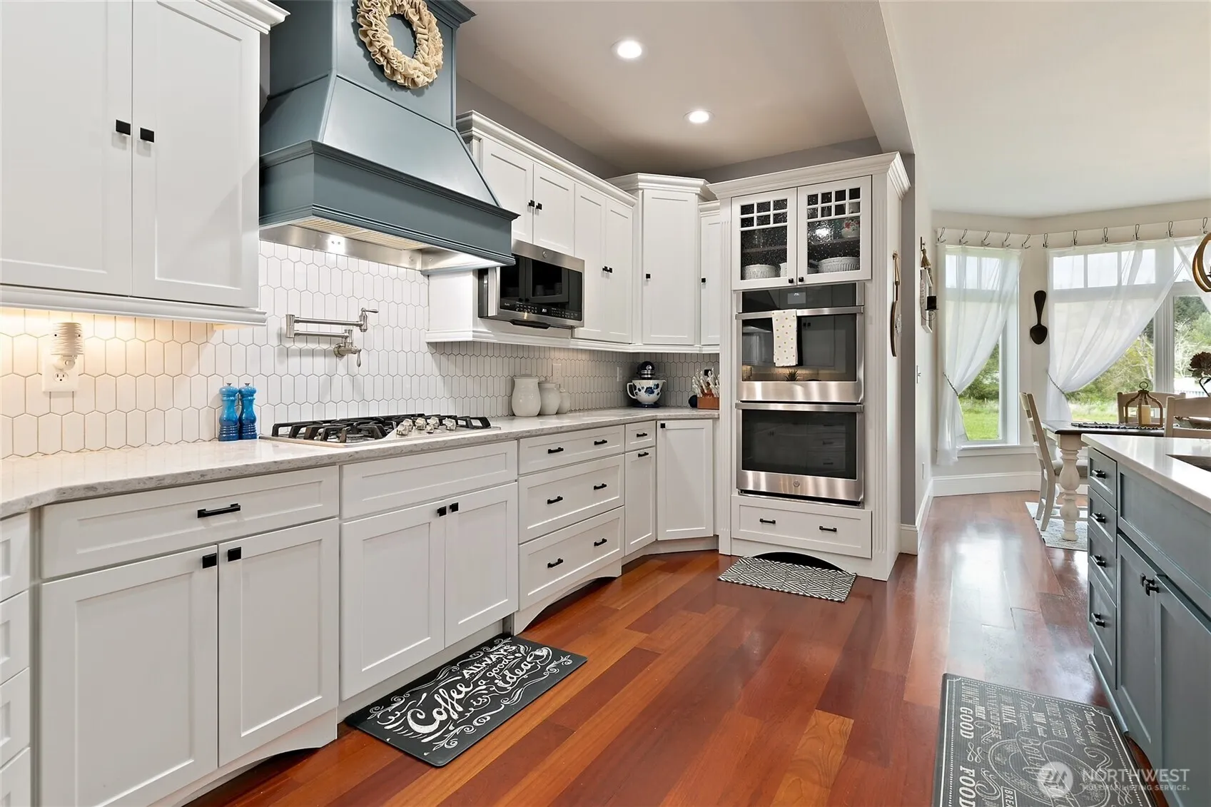 Escape to your private riverfront sanctuary on 6+ acres. This exceptional estate features two homes, a shop, barn, catering kitchen, solar power and multiple outbuildings—offering space, privacy, and versatility. The 3,531 sq ft main home includes 4 beds, 3 baths, and newly remodeled spaces: a chef’s gourmet kitchen with GE Cafe Smart appliances, main-level primary suite, updated baths, and laundry. A separate 1,620 sq ft guest home offers 3 beds, 2 baths, and 2 living areas—perfect for multi-gen living, guests, or rental income. Enjoy a gated entrance, fenced pastures, RV carport, commercial kitchen, and event-ready facilities. With salmon-filled waters, bald eagles, and serene views, this is your slice of paradise.