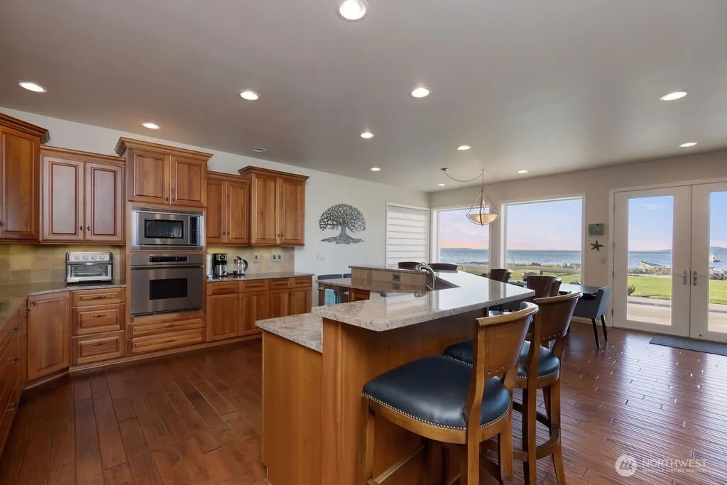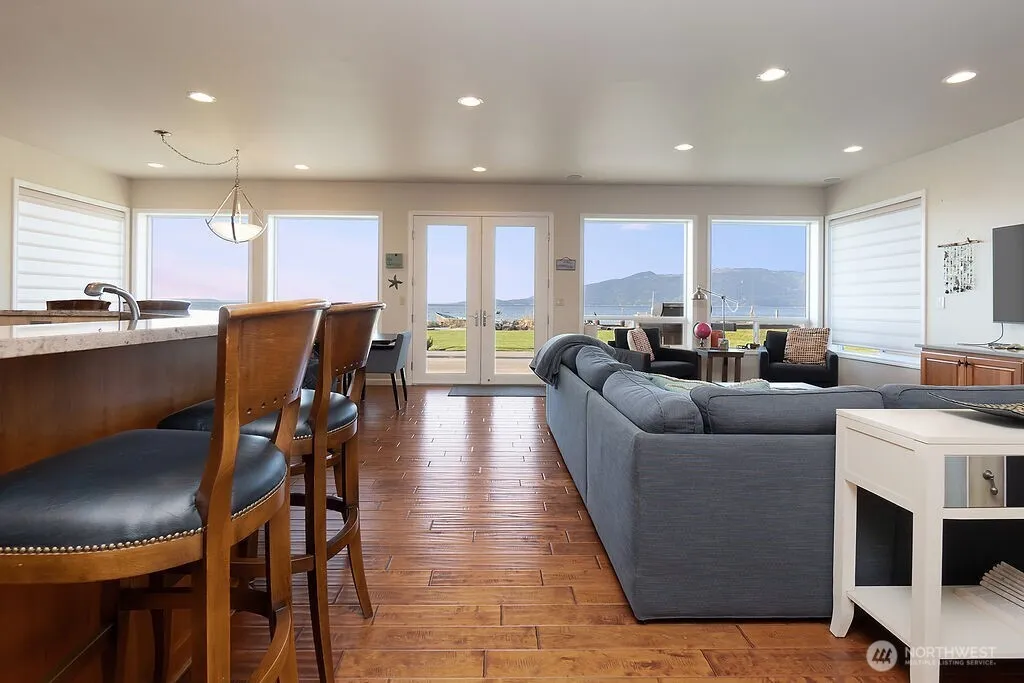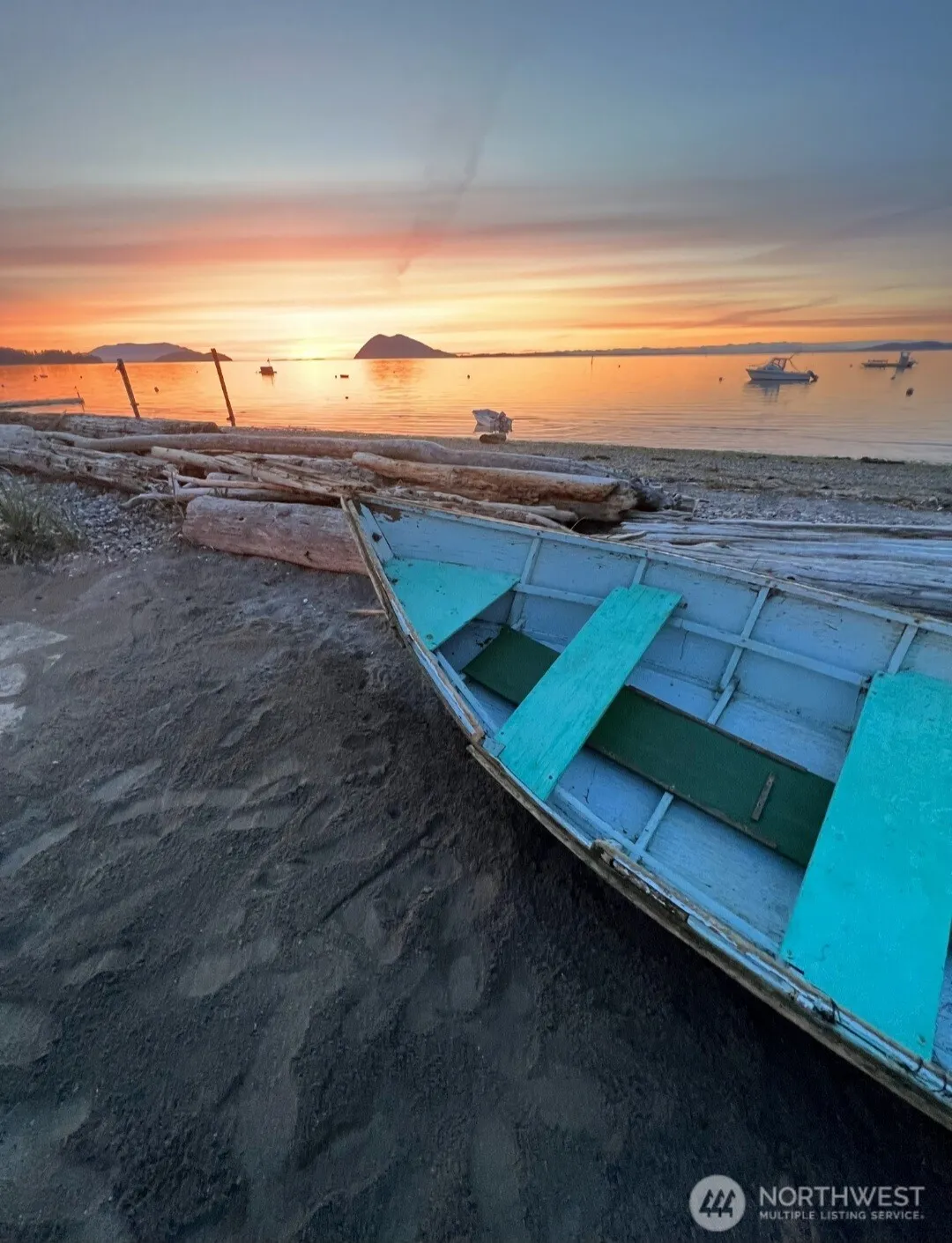 Stunning private beach lot home on Samish Island’s north shore on Samish Bay. Island and mountain views. Gorgeous sunsets. Main floor includes entry, living room, kitchen, walk in pantry, dining room, 2 bedrooms, 3/4 bath and half bath, laundry/utility room. Attached garage with entrance to main floor. One side of garage converted to spacious rec room. Upstairs has large master bedroom with attached full bath and views of the water and balcony, and 2 bonus rooms with their own closets. Back patio at beach level. Private dock in addition to 3 mooring balls and fire pit on your private beach makes this place a must see.