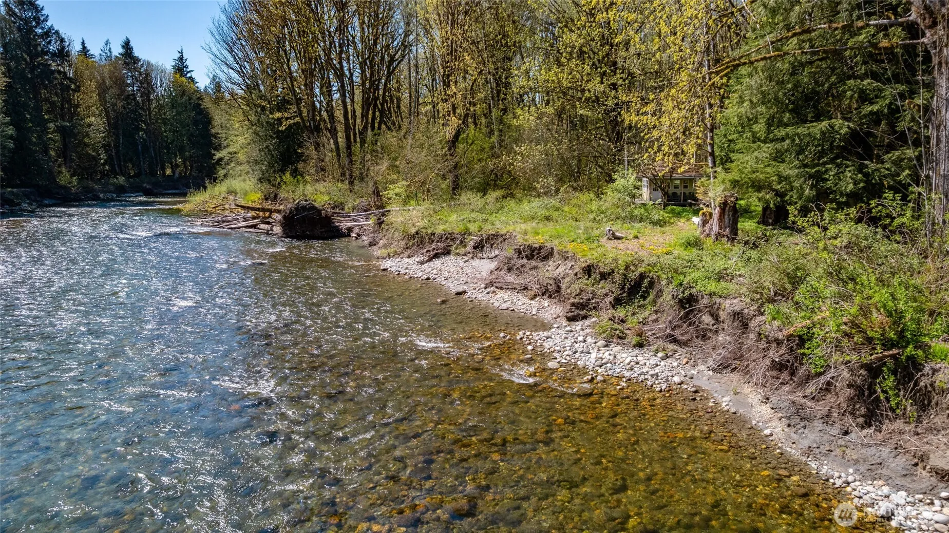 A Pure Sliver of Paradise along the North Fork of the Stillaguamish River in Arlington… This 5 Acre riverfront property might be an ideal site for a custom home. Currently used as a getaway destination w/ a unique dry cabin set along the river bank. The structure is a scale replica of a High Mountain Fire Lookout offering shelter from the elements with a walk-around outer deck. Well and septic would be needed if building a custom home. Ideal private getaway from the city (Camping & Fishing without neighbors). With very little work, this property could be setup to receive multiple R.V.’s for a prime friends camping experience. This unique parcel has river frontage on 2 sides and picturesque views of Whitehorse.