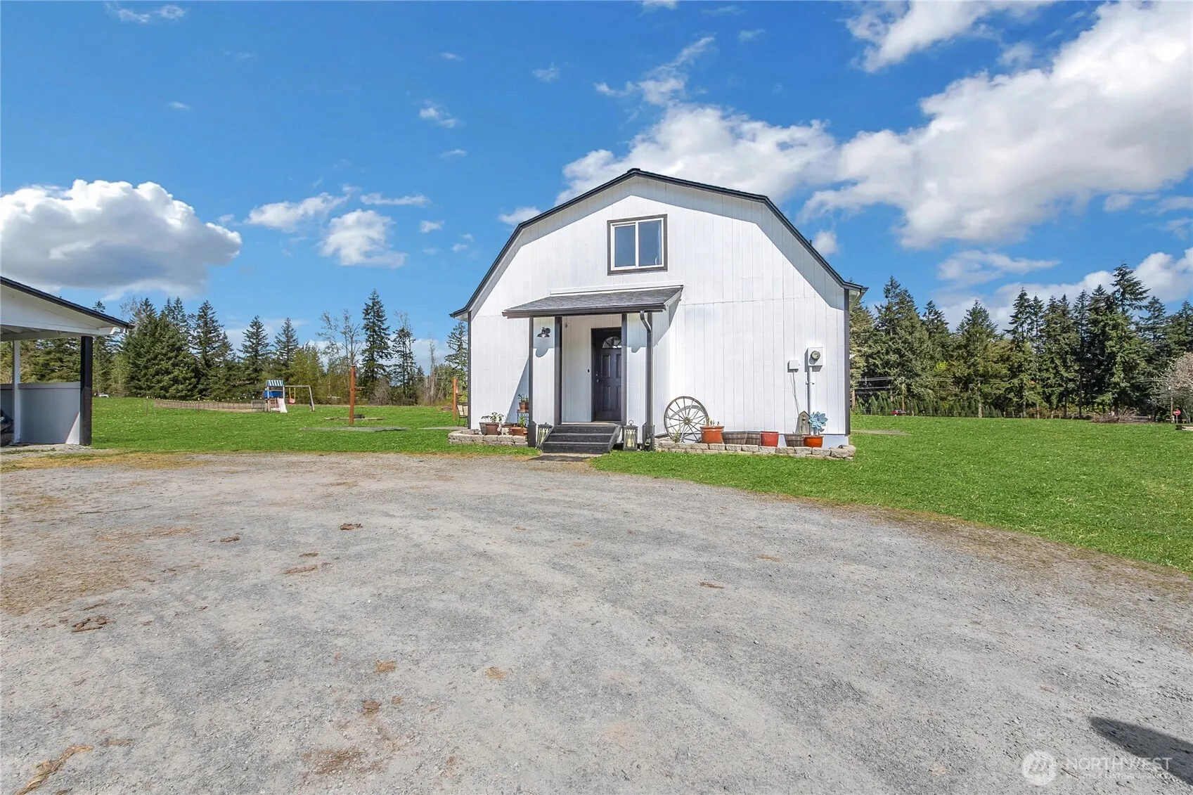 Stunning level 7.9 acres partly fenced with nice pastures for all your farm animals. Beautiful barn style home with matching detached garage/shop/barn or carports with huge 2nd story storage room. Fresh paint, new roof and gutters on home and shop that is ready for quick closing with recent well test and RSS for 2 bed septic. Mud room front entry, full bath on main floor, open kitchen w/island eating area, dining area and large living room and utility room with lots of storage. Welcome Home!