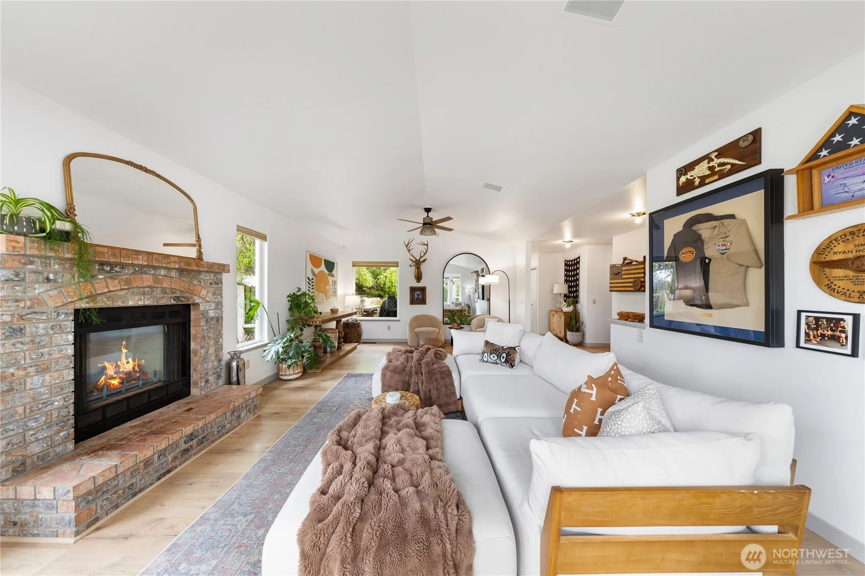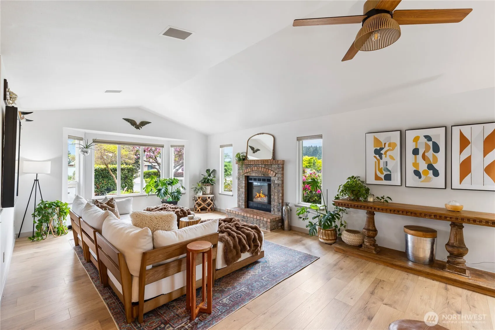 Step inside this charming Skyline home where style and comfort meet. Vaulted ceiling in the living room pair with a cozy brick fireplace & luxury vinyl flooring creating warmth & character. The beautifully remodeled kitchen steals the show with its two-tone Shaker cabinets, quartz countertops, center cooktop island with bar seating —perfect for everyday cooking or entertaining. Outside, enjoy lovely landscaped grounds, front & back paver patio, a dedicated BBQ deck, and a private outdoor sauna that adds a touch of spa-like luxury. Located in the desirable Skyline community, you’ll have access to beaches, sports courts, clubhouses, a marina, & scenic walking trails. Just minutes from Washington Park and the San Juan Island ferry terminal.