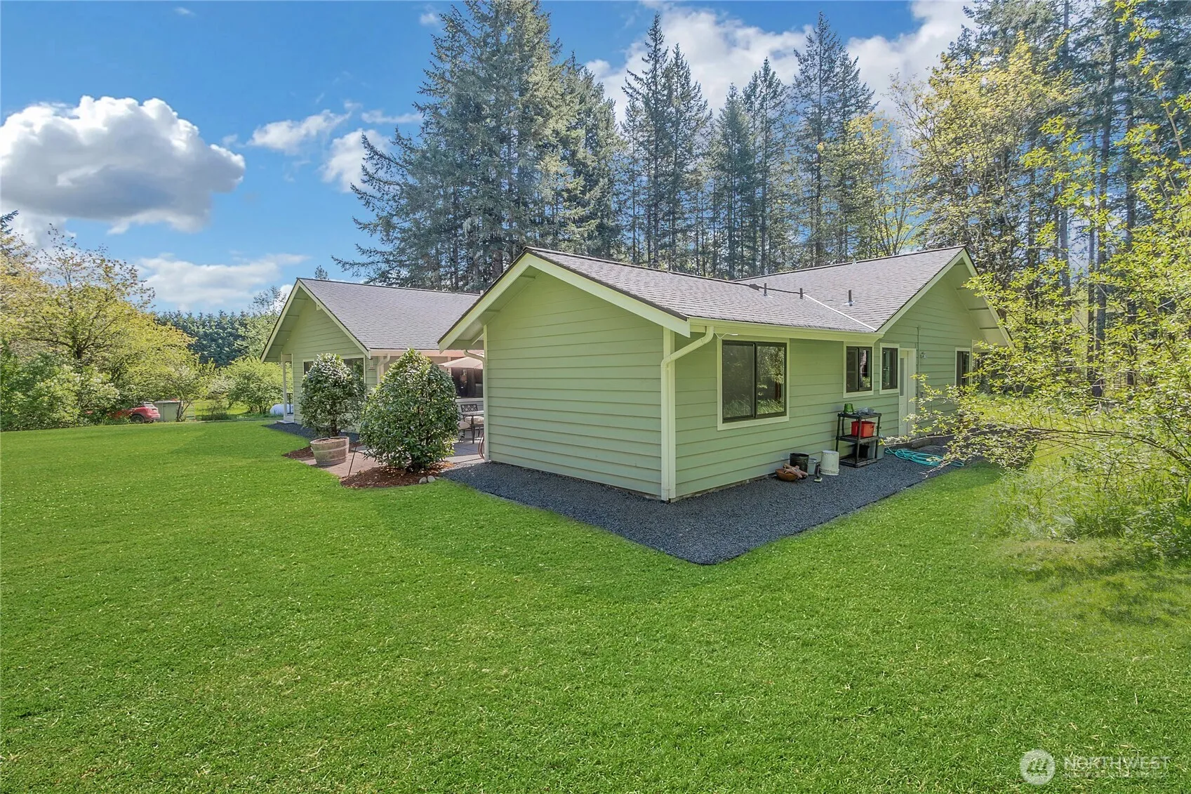 Gorgeous 7.39 acres with trees, trails, and stunning natural beauty—plus a fabulous rambler! This 4-bedroom, 1.75-bath open-concept home has been refreshed with new exterior paint on the house and garage, new quartz countertops and backsplash in the kitchen, and new tile surround in the main bath. The layout flows easily from the extra-large front deck into spacious living and dining rooms, highlighted by a wood-burning fireplace, and continues to a flexible office or playroom, three bedrooms, and a large primary suite with access to the central patio. The kitchen offers plenty of storage, plus a built-in china hutch and desk that lead to a secondary dining or family area. An oversized 2-car garage includes shop space for everything.