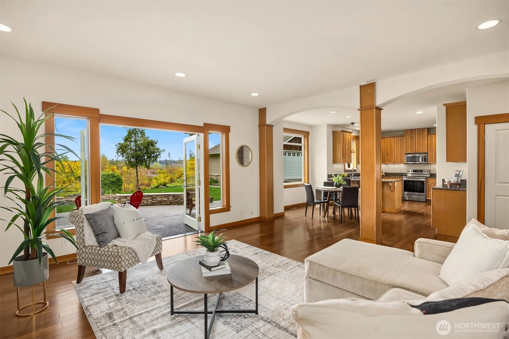 Custom-built forever home, this immaculate residence with a lovely Hood Canal & Olympic Mountain view is the perfect spot for creating a lifetime of happy memories. Designed to take advantage of the large, sunny lot, this gem features comfortable, fun loving & inviting spaces that you will want to come home to year-round. High ceilings, spacious rooms, abundant windows & a floorplan designed for ease of living & indoor & outdoor entertaining. The oversized great room, with a handsome stone hearth, opens to a covered, outdoor patio with a hot tub & firepit. A dreamy primary suite boasts a view & luxe en-suite bath. Large bonus room/gym above the 3 car garage. Detached garage/shop has room for projects and/or a boat. Community beach access.