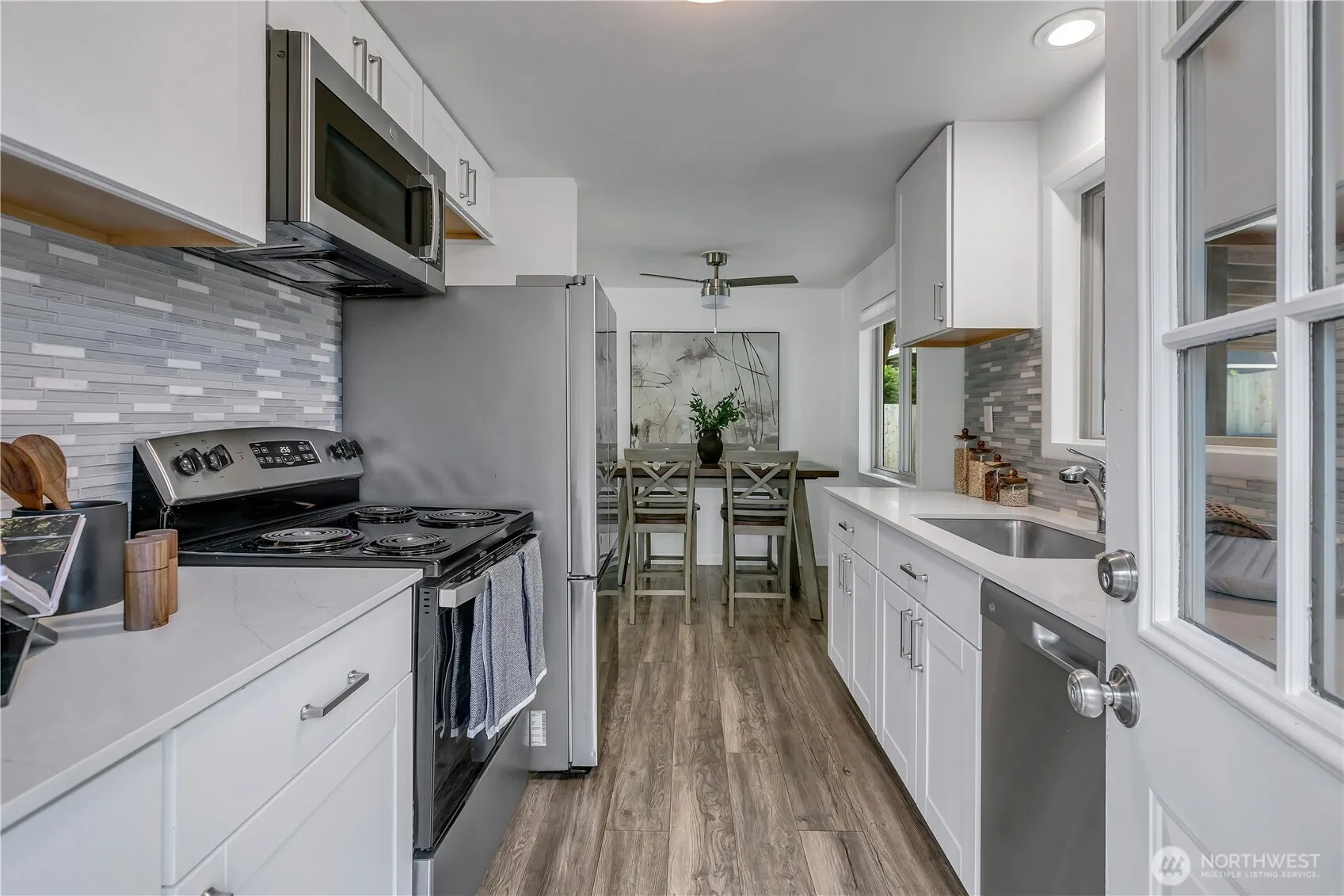 Charming remodeled rambler in the heart of Des Moines! This 3 bed, 1 bath home has been thoughtfully updated throughout with stylish vinyl plank flooring, sleek quartz countertops, and fresh landscaping that adds to its curb appeal. Enjoy the massive covered patio—perfect for outdoor dining and entertaining. The real showstopper? A huge backyard backed by an additional included parcel, offering incredible space and freedom to build, whether you’re dreaming of a DADU, workshop, or urban farm. Tons of off-street parking, including RV space. Pre-inspected and move-in ready—ideal for first-time buyers, investors, or anyone looking for a smart opportunity in a great location.