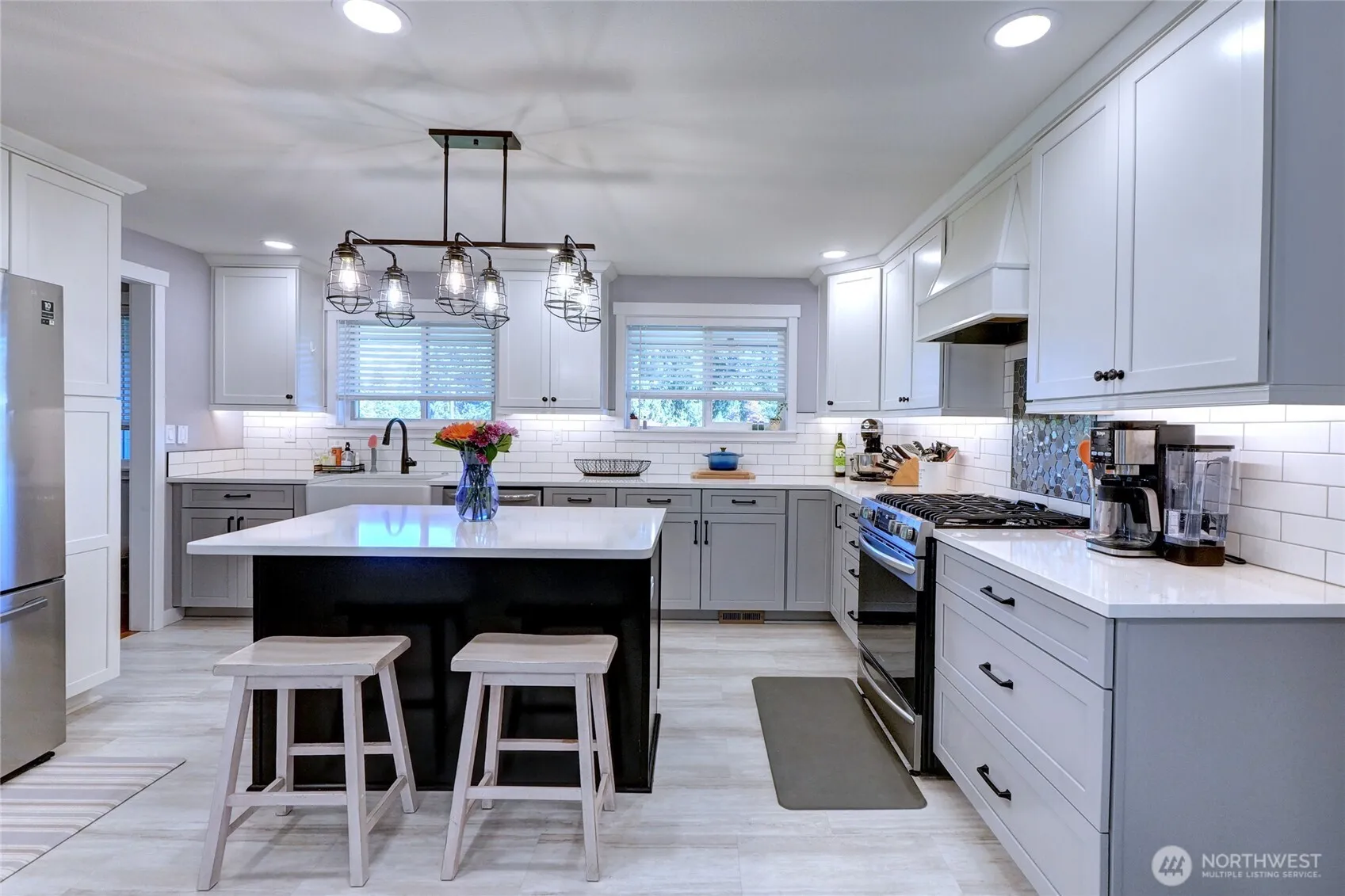 Beautifully remodeled, move in ready 1 story home in UP School District. Primary suite plus 2 bedrooms. Large bonus room. Gorgeous quartz counters throughout home. Brand new carpets & pad just installed. Updated electrical & plumbing. Gourmet kitchen which features custom soft-close shaker cabinets, island w/ power outlet & eating space, farmhouse sink, tile backsplash, LVP floors, SS appliances, air fryer convection oven. Inviting covered front porch, open living & dining spaces w/ hardwood floors, cozy gas fireplace & bright bay window. Fully-fenced, level & private backyard with newer patio. Attached 2 car garage, garden spaces and tankless water heater. New roof in 2022. Minutes to Chambers Bay. 1yr Standard Home Warranty Included.