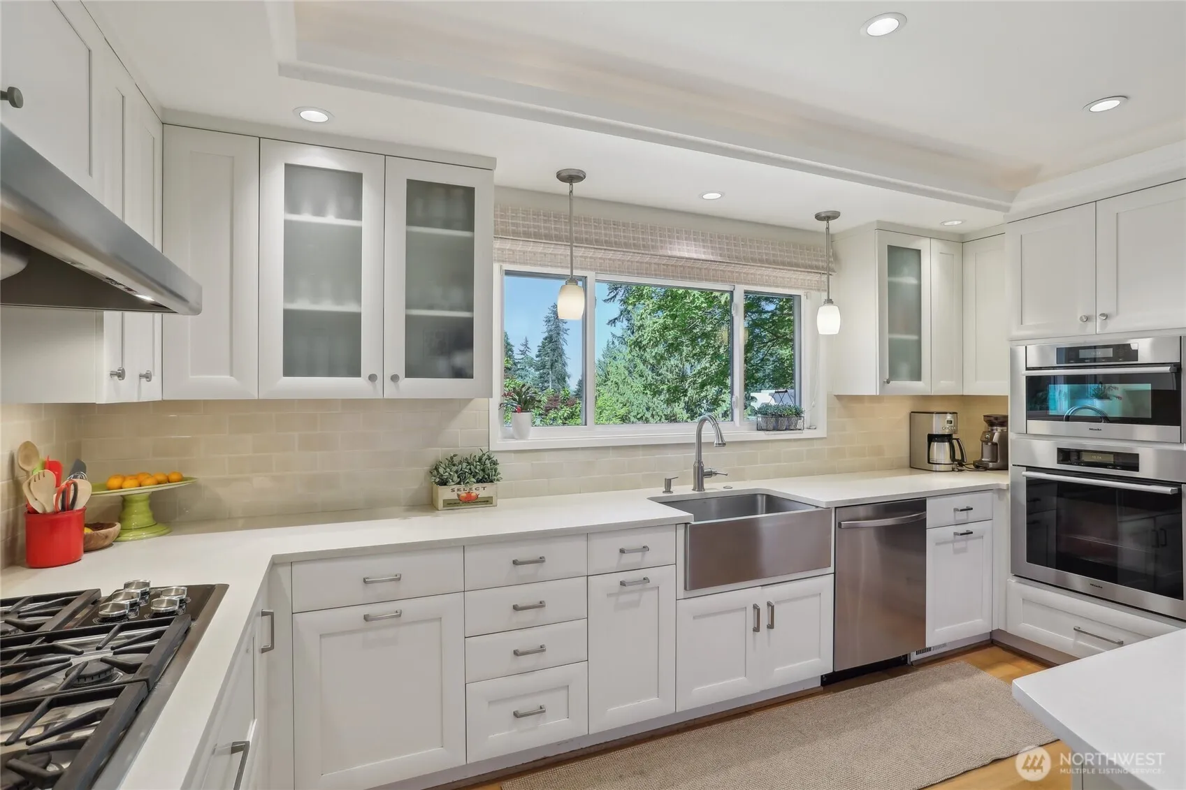 Discover timeless elegance in this lovingly updated Mercer Island gem. Featuring a functional floorplan, the main level includes a guest bedroom with updated bathroom and direct exterior access. Upstairs, enjoy a primary with en-suite, plus three additional spacious bedrooms and a bathroom. Hardwood floors flow throughout, enhancing a warm, inviting ambiance.Natural light and vaulted ceilings create a Scandinavian Hygge feel. The kitchen offers peek-a-boo mountain views. Outside, a sunny, west-facing terraced yard provides ample space for a potential backyard cottage. Enjoy a rec room, utility, powder room, and an oversized garage. You’ll love the seamless access to Pioneer Park trails and top schools. Welcome to your island sanctuary.