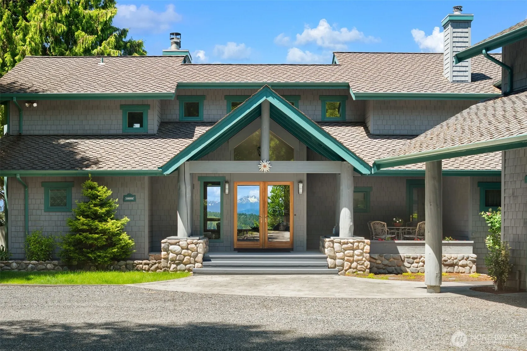 Experience the best of Pacific Northwest living in this stunning 4,000 + sq ft Mountain & Sound view retreat on nearly 5 private acres. This 3 bedroom, 5 bath custom home offers expansive living spaces, soaring ceilings, and breathtaking views from nearly every room. Clear Fir trim & custom cabinetry, stone fireplaces, lower level game/rec room with wet bar & wine cellar. Primary suite has its own access stair & balcony. Enjoy summer entertaining with a large in-ground pool and spacious patio. Two detached dwelling units provide flexible options for guests or rental income. Huge shop offers space for hobbies, storage, or business use. A rare opportunity to own a private oasis just minutes from town, with room to live, work, and play.