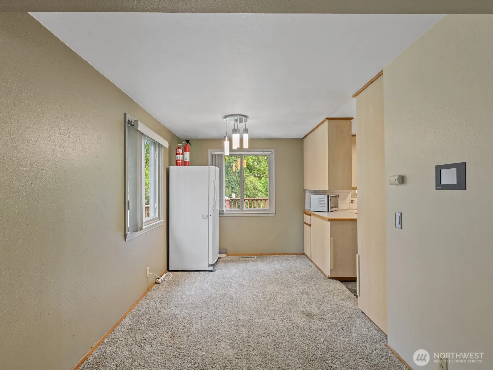 Discover a private oasis in a prime location! This spacious 4-bedroom, 3-bath home on a 1/3-acre lot offers comfort, convenience, and room to grow. Ideally situated within walking distance to elementary, middle, and high schools, as well as Highline College. Enjoy easy access to freeways and the light rail for stress-free commuting. The large Trex deck overlooks a serene greenbelt and a peaceful creek, creating a perfect outdoor retreat. Inside, the sunroom with skylights and wall-to-wall windows is ideal for relaxing or growing plants. Stay cool with central A/C. Features include two living rooms, a dining room, fireplaces on both levels, and a kitchen with nearly new stainless-steel appliances. Tranquility and privacy meets convenience!