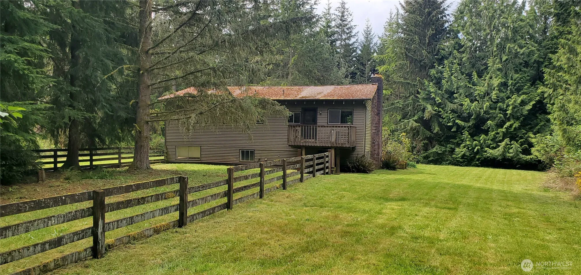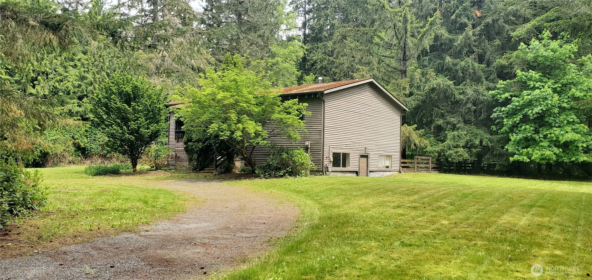 Gated Entrance to 10 acres of dry level land with massive Douglas Fir Trees zoned RA-10SO. The property has a main house that is one story with a daylight basement; and a second smaller rental house. Both houses require updating and are Fixers; but each have good potential once remodeled. Both houses are located in private settings with nice open yards and lawns. Each house has separate individual wells/septic and connected to natural gas. An additional bonus to the property is that there is a large “Dome Shaped” covered storage area. Property value is in the Land, Timber, 2 wells and rental income. Seller intends to sell the property “As Is”. Property to be sold with the current month-to-month renters in the 2nd smaller rental house.