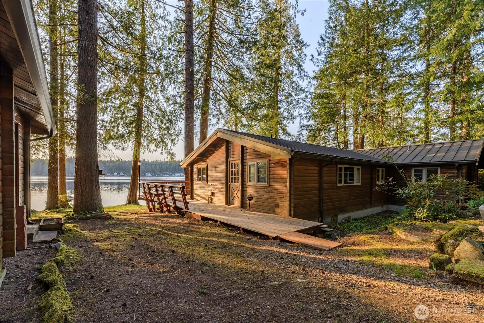 RARE & VALUABLE level double lot on Mason Lake w/ 135′ of pebbly, no-bank waterfront! This cedar pan-abode cabin features a durable metal roof, vintage charm & stunning western exposure with unforgettable sunsets. Step inside and be transported to a simpler time – ready to unwind and soak in all the natural beauty. Gather around the natural flagstone fireplace, where stories and warmth have filled the room for generations. Plan your dream legacy retreat on this stunning property. Stash all your lake toys in the convenient grandfathered-in boathouse located at the water’s edge. A true once-in-a-generation opportunity! Enjoy this gorgeous rustic cabin on this incredible lot!