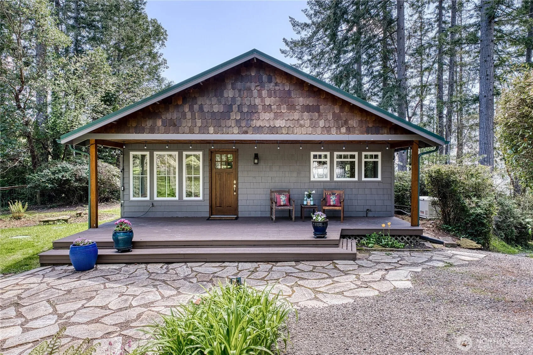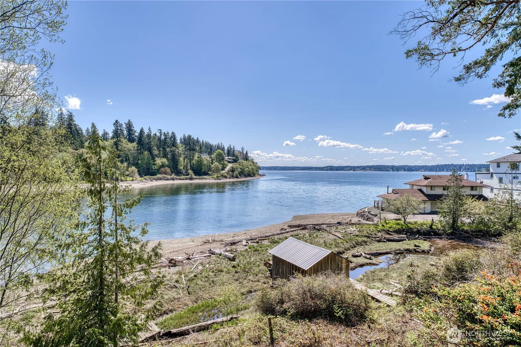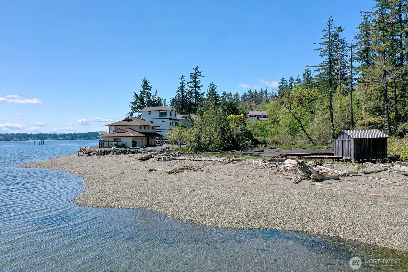 You’ll love coming home to your single-level waterfront retreat w/spectacular views & private beach! Paddle the Puget Sound from your front yard–or relax & take in the ever-changing water views from your partially covered deck off the cozy living room w/gas fireplace…perfect for year-round enjoyment. Fabulous 2-bedroom, 1 bath home w/welcoming covered porch, boathouse, detached carport; plus, shed & studio both have power–all on 2.25 peaceful acres w/fruit trees & fenced garden space. Auto-generator, on demand hot water & double water filtration system. A meandering path & boardwalk lead to your 154′ private beach w/huge sandspit, driftwood sea & life galore! Next to Taylor Bay Park & close to Joemma State Park, boat launches & marinas.