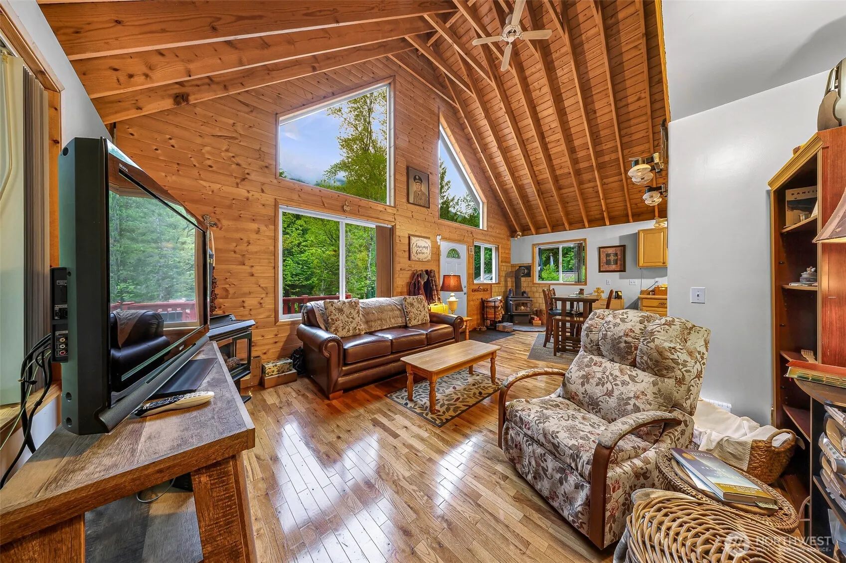 Amazing Airbnb opportunity or live fulltime – this recreational escape is a nature-lover’s getaway. Charming 2-bed, 1-bath cabin nestled in the heart of Cascade River Park! With 1,186 sqft of cozy living space on a nearly 0.4-acre lot, this peaceful Marblemount retreat blends rustic charm and off-grid appeal for the perfect getaway. Thoughtfully maintained & updated, the home features wood flooring, loft, a spacious 284 sqft deck with amazing mountain views and so much more. Surrounded by trees, on the Cascade river, this is your chance to enjoy wildlife, mountain air, fishing, star-filled nights and even a trip to downtown Marblemount. Raft, hike, kayak, and bike – this is a perfect place to step away from everyday living and enjoy nature.