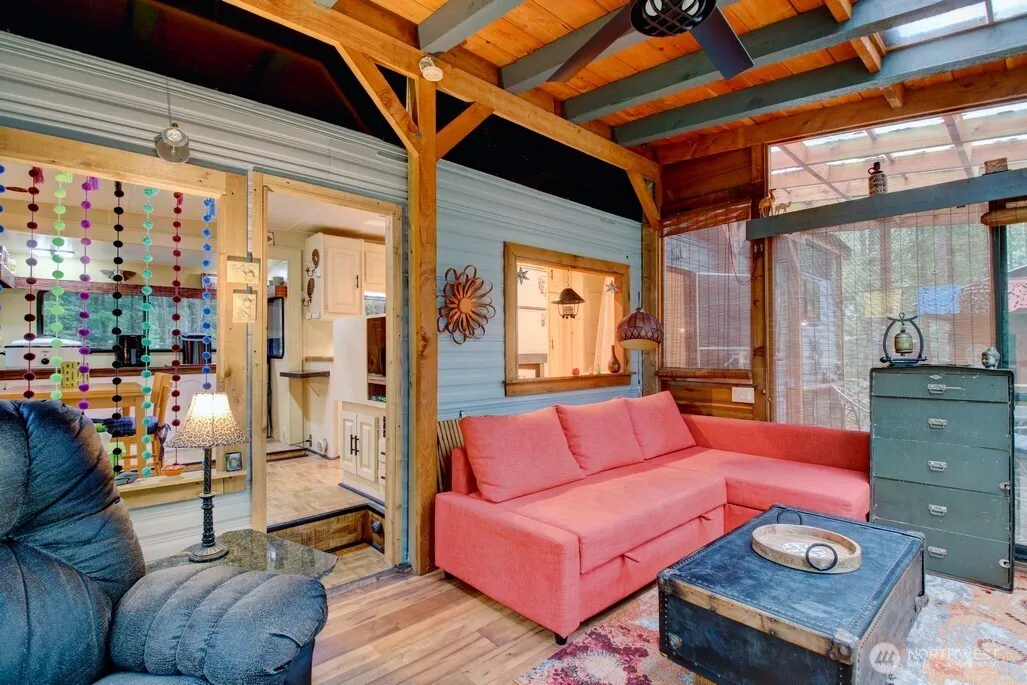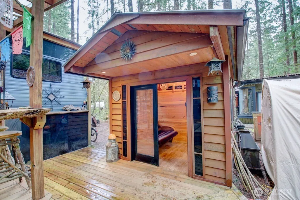 Escape to The Glen at Maple Falls! This charming fifth wheel trailer sits on a private, wooded 4,356 sq ft lot in Division 6. Recent updates include a refreshed furnace, lovely garden space, and partial deck replacement, plus a built-in AC to keep you cool. Cozy up by the electric fireplace after a day exploring Mt. Baker or lounging at one of the two community pools. The Glen offers gated security, hot tub, tennis courts, two clubhouses, a library, trails, and playgrounds—all within reach of this recreational-zoned haven (120 days/year use). Water, septic, and power are in place. Whether you’re dreaming of weekend escapes or seasonal stays, this peaceful, gated getaway checks all the boxes.