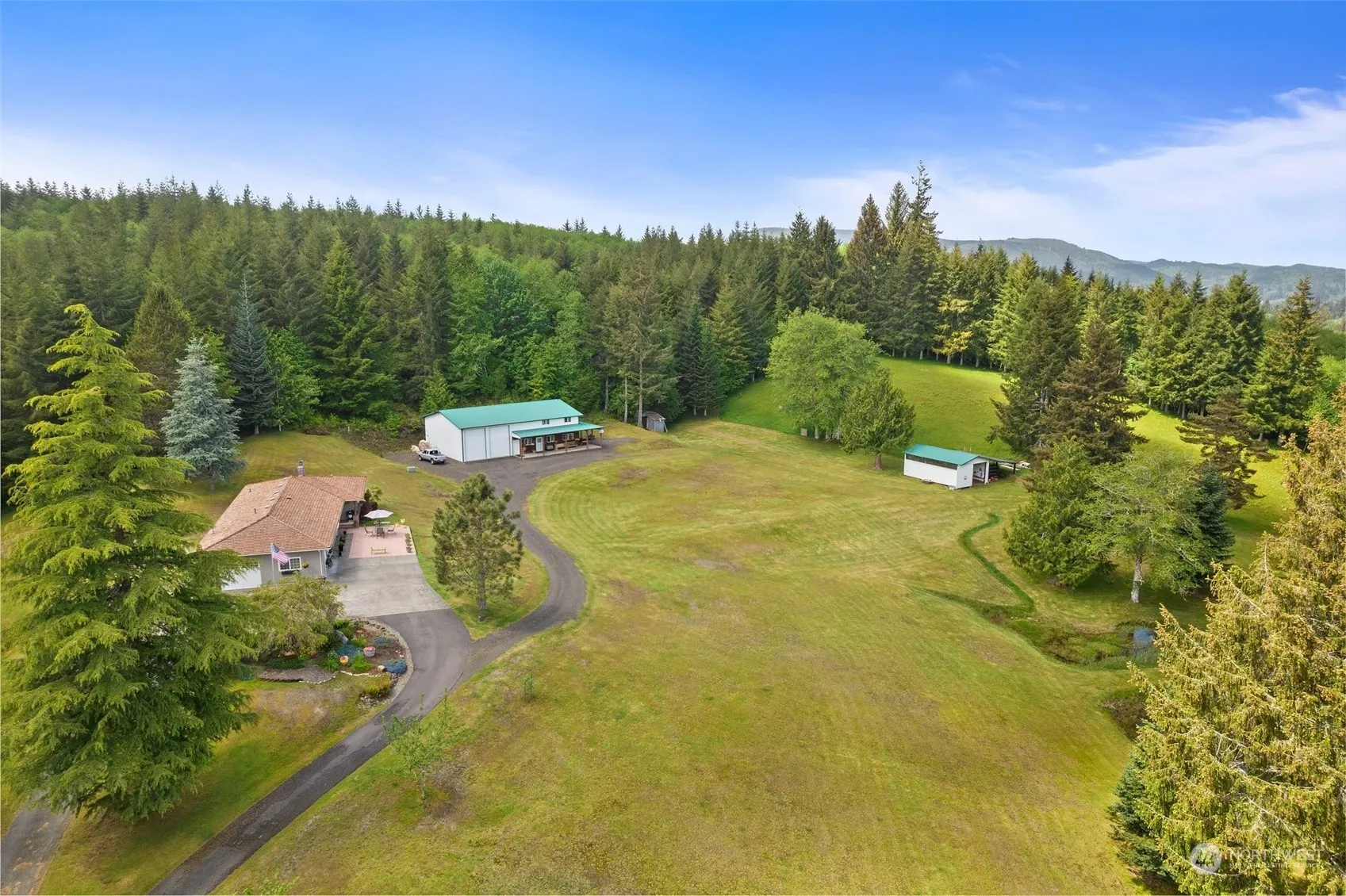 This stunning single-story home rests on 7.2 acres of beautiful pasture land, surrounded by harvestable timber that provides both seclusion and a haven for local wildlife, including deer and elk. At the heart of the property is an oversized detached shop featuring a commercial-grade kitchen, half bath, and a private apartment above—perfect for hosting, rental potential, or multi-generational living. Inside the home, you’ll find 3 bedrooms and 1.75 bathrooms, a bright open layout, and a spacious kitchen with double ovens, breakfast bar, and dining area. The primary suite offers a large vanity and soaking tub. Outside, enjoy a tranquil pond, circle drive, large patio, 2-stall barn, extra storage, and fruit trees.