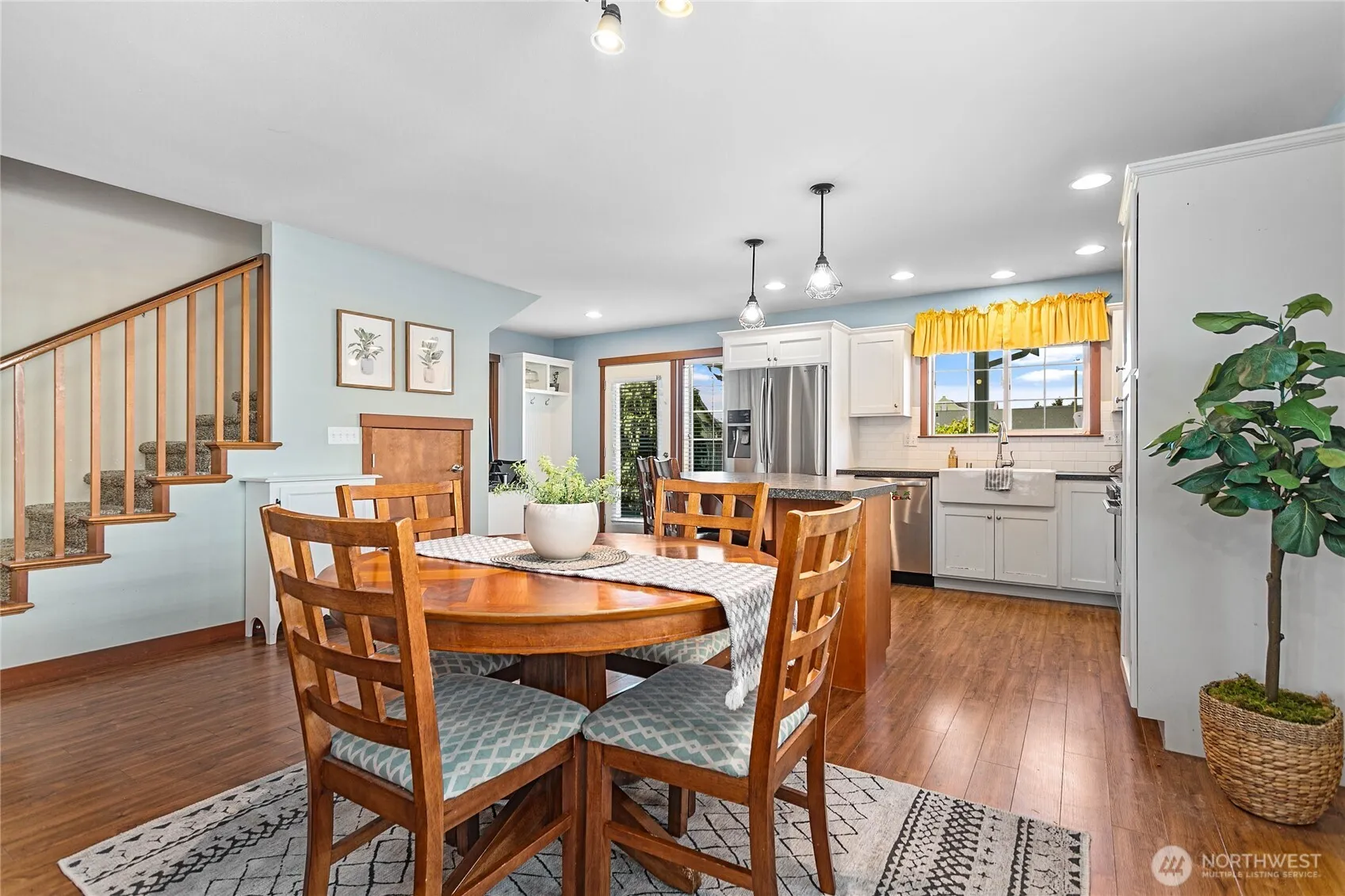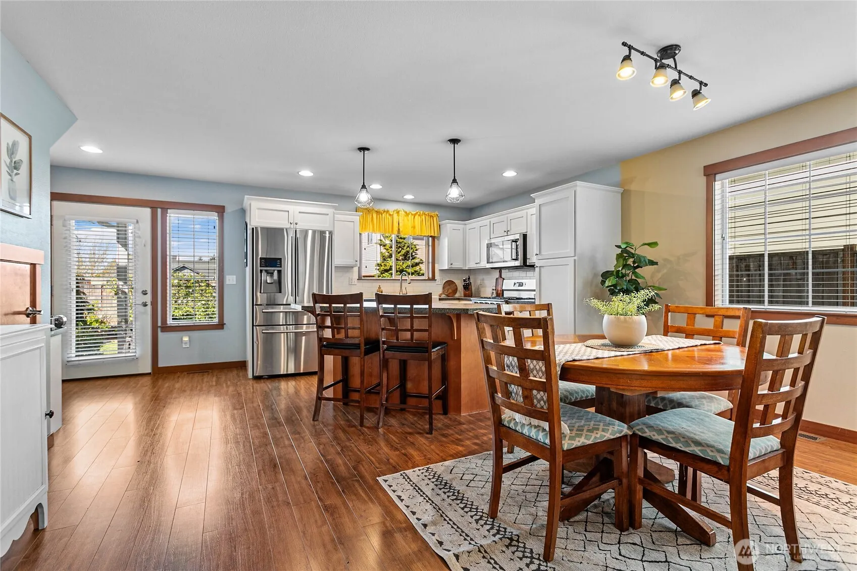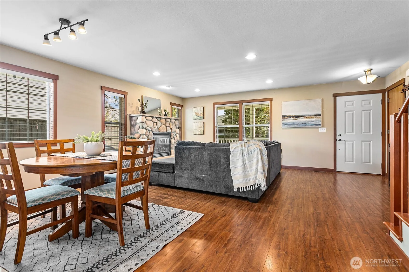 Well-maintained affordable home in great location close to all 3 schools, walking trails, parks & more. Charming covered front porch welcomes you into nice open floor plan. Cozy gas fireplace w/full stone surround & hearth take center stage in the living room. Dining is a great size & just off kitchen. Bright inviting white cabinets with newer stainless-steel appliances & eat-in island make up kitchen. Owner’s suite boasts walk-in closet + extra & spacious ensuite bath w/dual vanity. Guest bath & utility complete this functional 1st floor. 2 more large bedrooms, full bath & tons of storage upstairs. Perfect time of year to enjoy fully fenced back yard oasis w/fruit trees, extra patio, & included jacuzzi under covered porch.