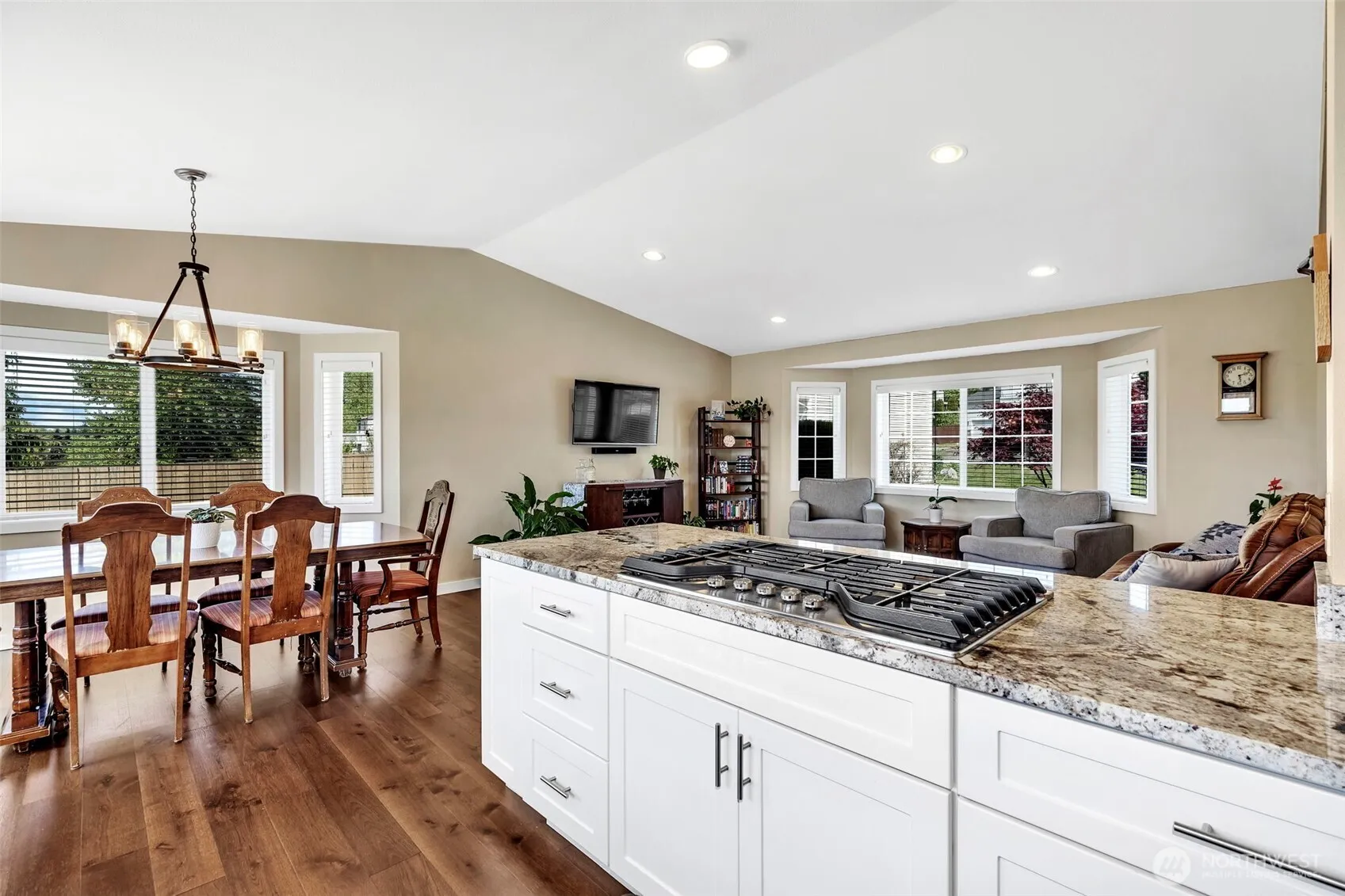 Must See! Tucked in a cul-de-sac, this tri-level home lives large! Main level dazzles w/ engineered HW flrs, vaulted ceilings, & natural light that unites living & dining areas w/chef-ready kitchen featuring quartz counters, white shaker cabs, SS appliances, & pull-out storage. Upstairs, the primary suite enjoys Sound & Mtn views from its private balcony, plus a full bath & walk-in closet. Downstairs offers a versatile family rm anchored by a cozy gas FP w/access to 3 car gar, ldry rm & yard. A sprawling Trex deck & pergola overlook the large & level fenced backyard, ideal for gatherings or quiet morning coffee. Pre-inspected w/ newer roof, furnace & A/C. Mins to the Des Moines Marina, freeways, parks, Highline College, & the new light rail