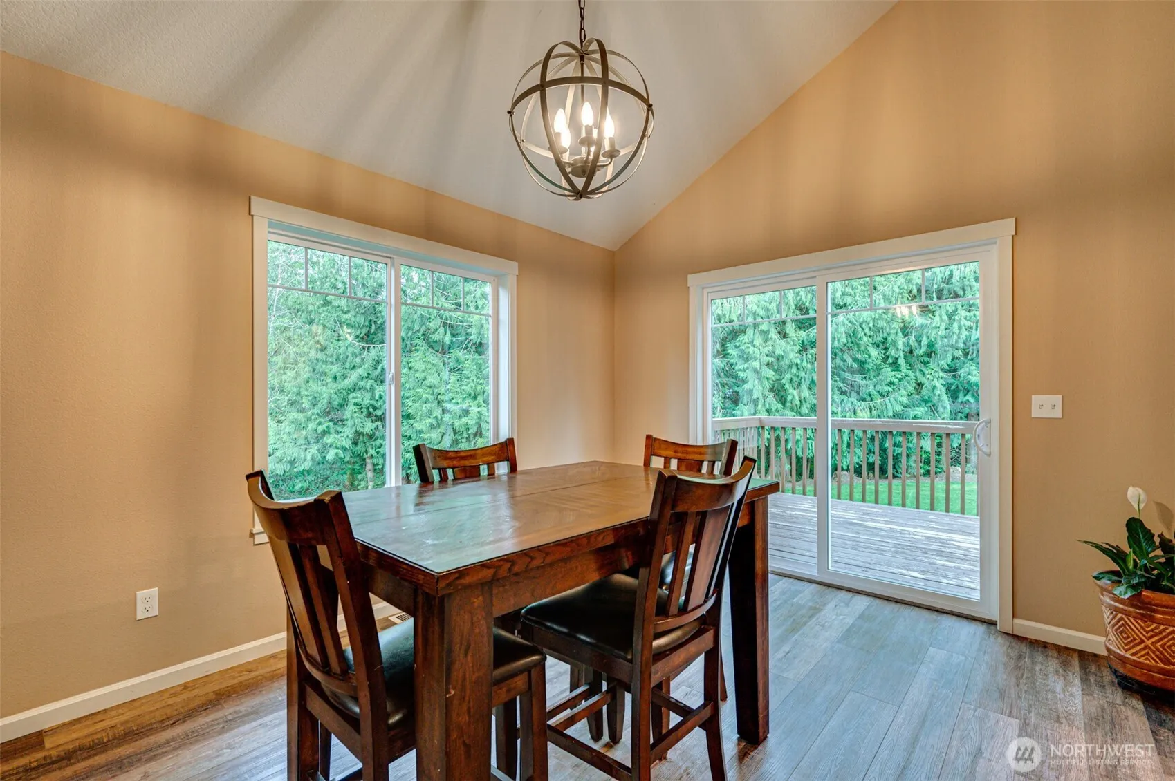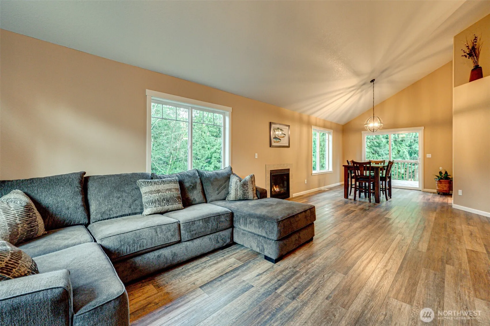 Country feel, yet just minutes to town! It’s like building new—without the headache! Beautifully designed 3-bedroom, 2.5-bath home is move-in ready. The vaulted living room features a cozy fireplace and opens to the dining area with a slider to the large deck overlooking the serene backyard and trees. Energy efficient heat-pump for heating and cooling year-round! The fully stocked kitchen has stainless steel appliances, a large pantry with an appliance shelf, and an eating bar. Laminate flooring runs throughout the main level. Upstairs, you’ll find a vaulted primary suite and two additional bedrooms, plus a full guest bathroom. Situated on just under an acre—this is the one you’ve been waiting for!