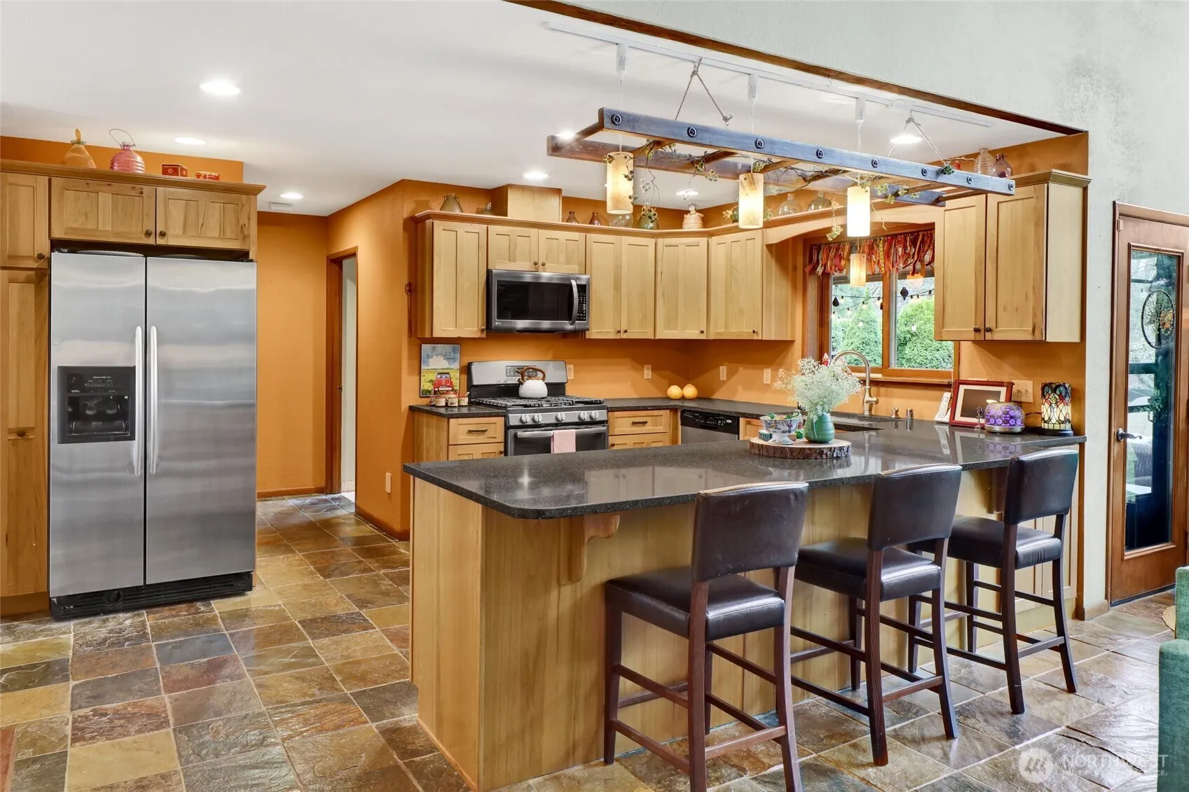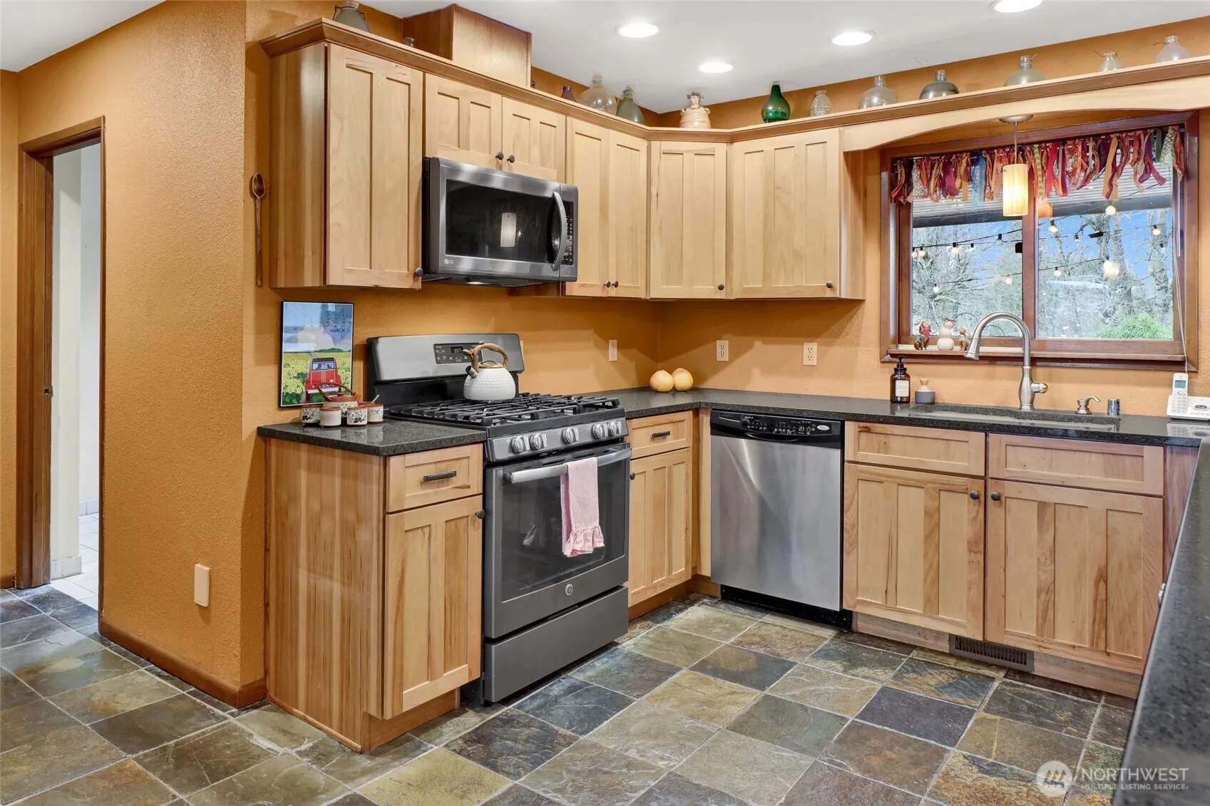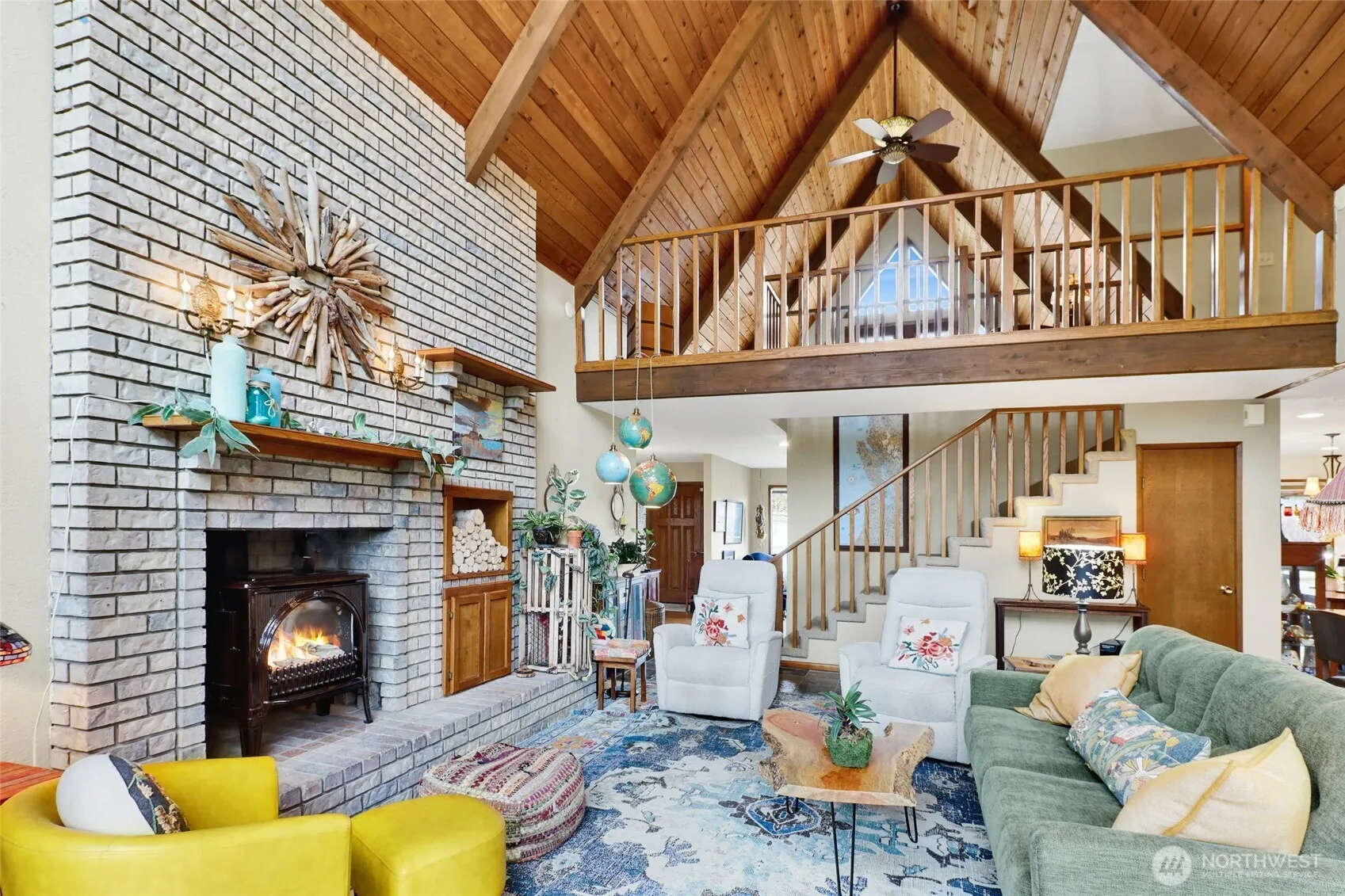 Enjoy charming creek front living on nearly half an acre in a prime Lynden location! This 4 bed/2.5 bath home features vaulted ceilings, large windows & bonus loft space which provides ample natural light creating a warm & inviting atmosphere. The heated workshop has plenty of space for hobbies, projects or an art studio. Solar panels were installed in 2024 making this home eco-friendly & cost efficient. The expansive yard is perfect for entertaining w/mature landscaping including fruit trees & cherry blossoms backing up to Fishtrap Creek. The oversized garage has room for 3 cars. Lots of storage throughout! With easy access to Bender Field & nearby walking trails, this home combines comfort & functionality.