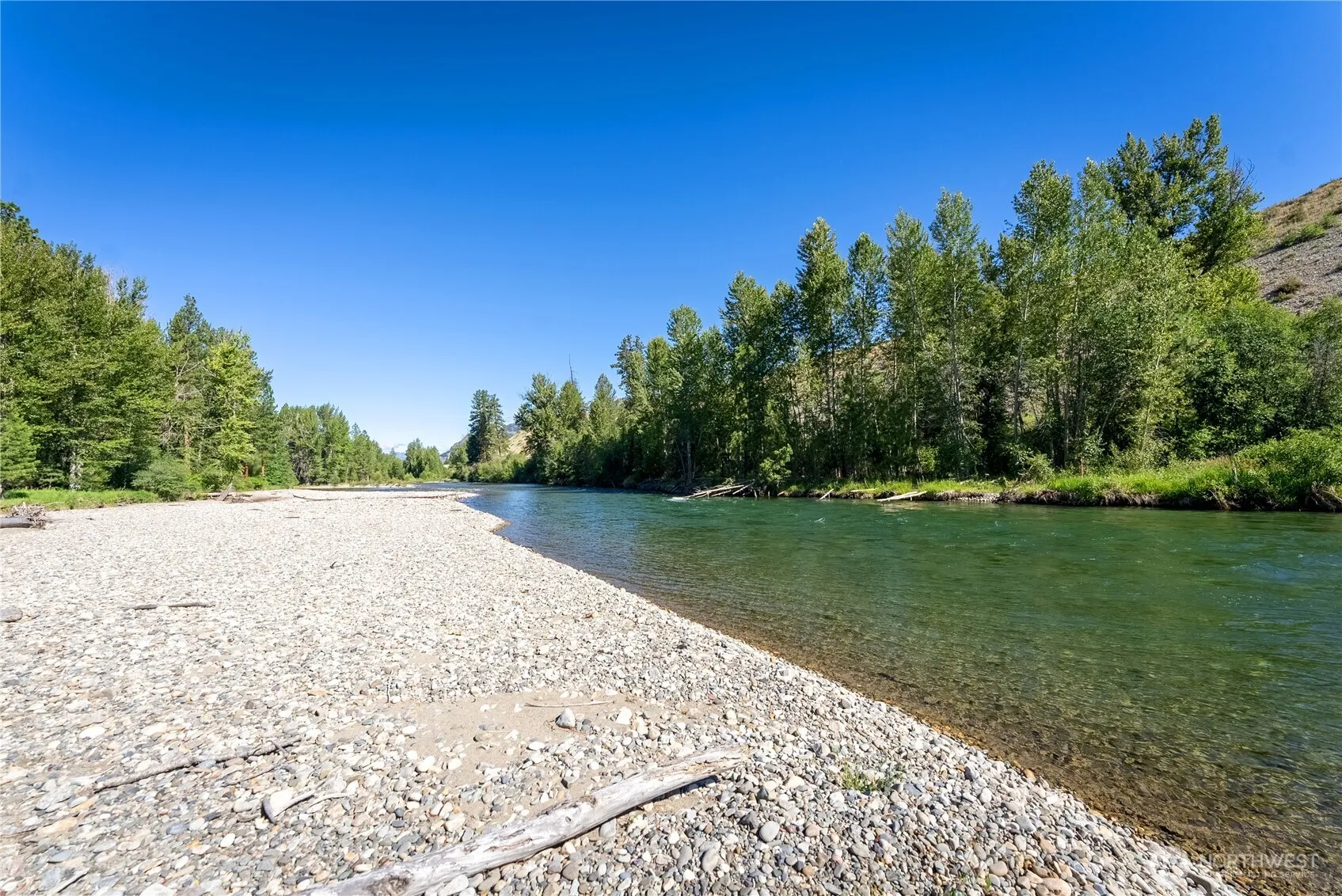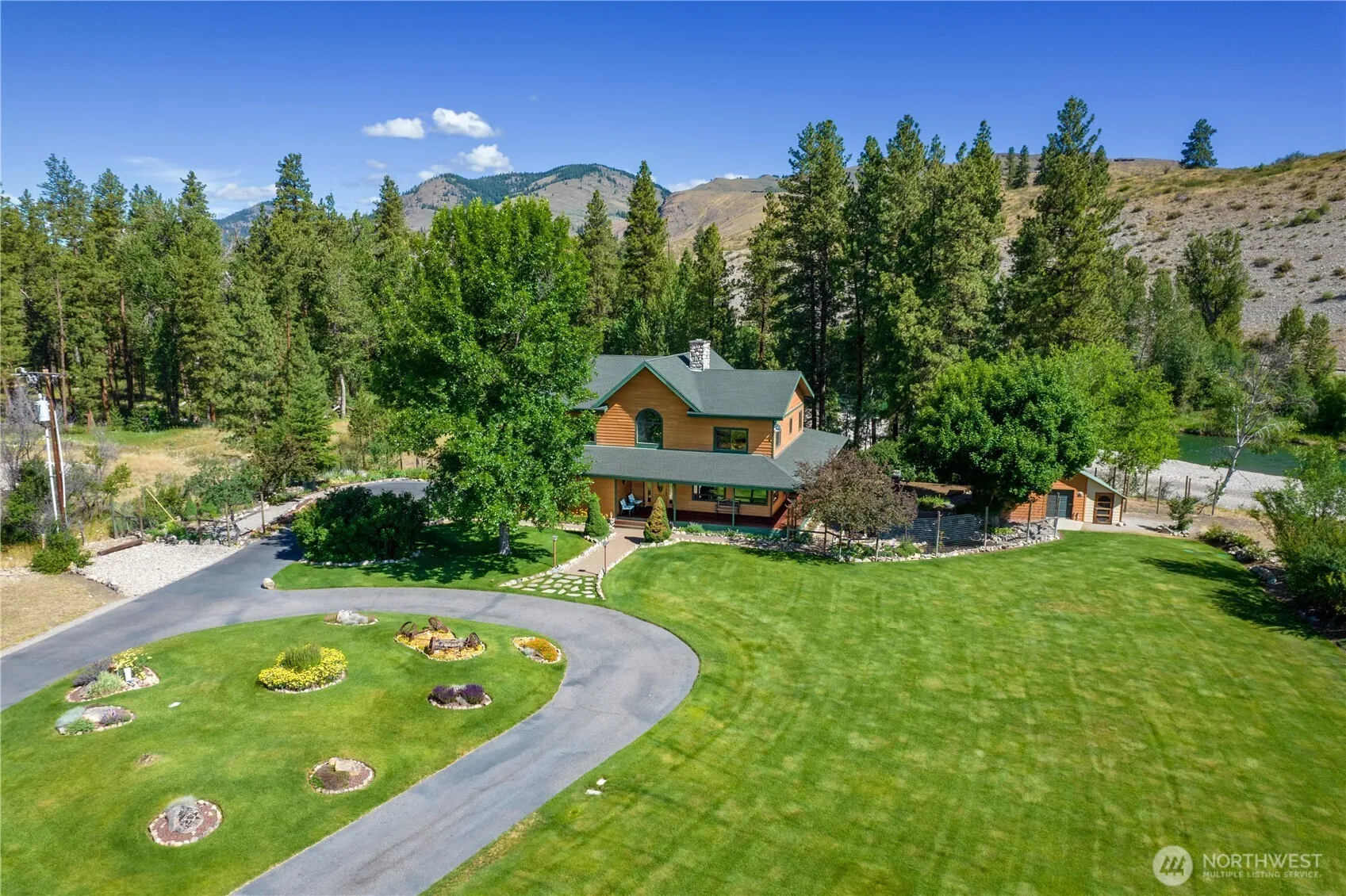Methow Riverfront Magic! 5.6-acre property near Winthrop offers stunning river views & an accessible gravel beach for riverfront exploration. Covered porches & river facing windows capture dramatic river, beach & scattered pines. Spacious open floor plan features a lrg gourmet kitchen island, & a striking river rock fireplace. Enjoy an immense primary suite w deluxe ensuite bathroom. 2 more cheerful bedrooms, bathrooms, bright office, flex/rec room, daylight basement. Walk to Nordic trail that crosses 300+/- from driveway! Adjacent to 24 acres of public riverfront land for extended naturalist excursions. Oversized 2-car garage, covered entry, garden shed and plenty of storage. Square footage & storage galore for mountain lifestyle gear!