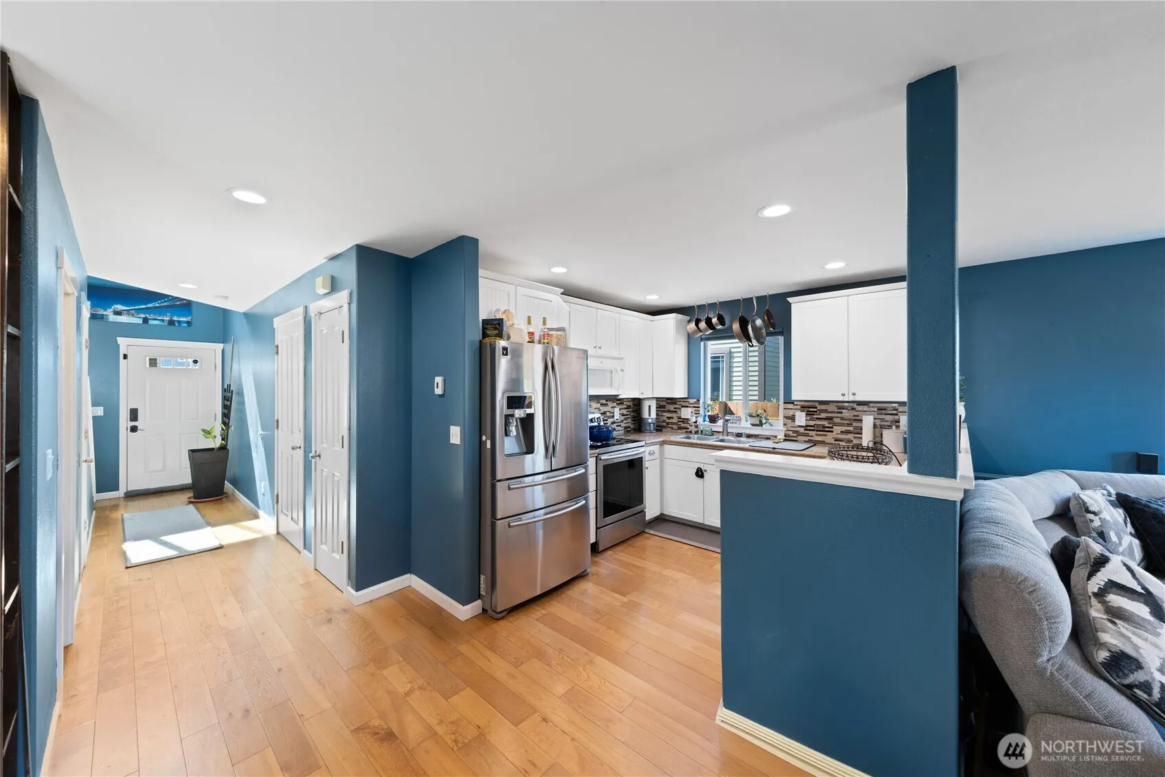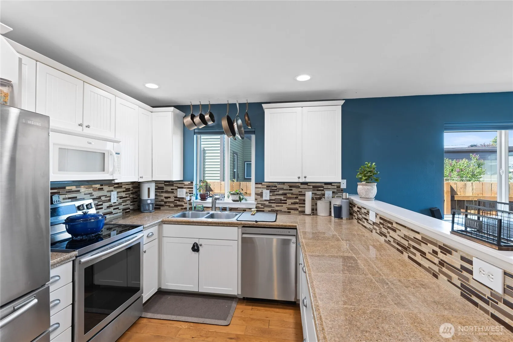 Amazing location—just a short waterfront stroll to local restaurants and shops! The main level features hardwood floors and an open-concept layout with a cozy gas fireplace in the living room. The kitchen is a standout with shaker-style cabinets, granite countertops, tile backsplash, and stainless steel appliances. Upstairs, the spacious primary suite offers beautiful Fidalgo Bay views, a large walk-in closet, and a private ensuite bath. Enjoy outdoor living with a fully fenced backyard, roomy deck, and space to relax or play. All nestled in a charming small-town island community where life moves at a more peaceful pace.