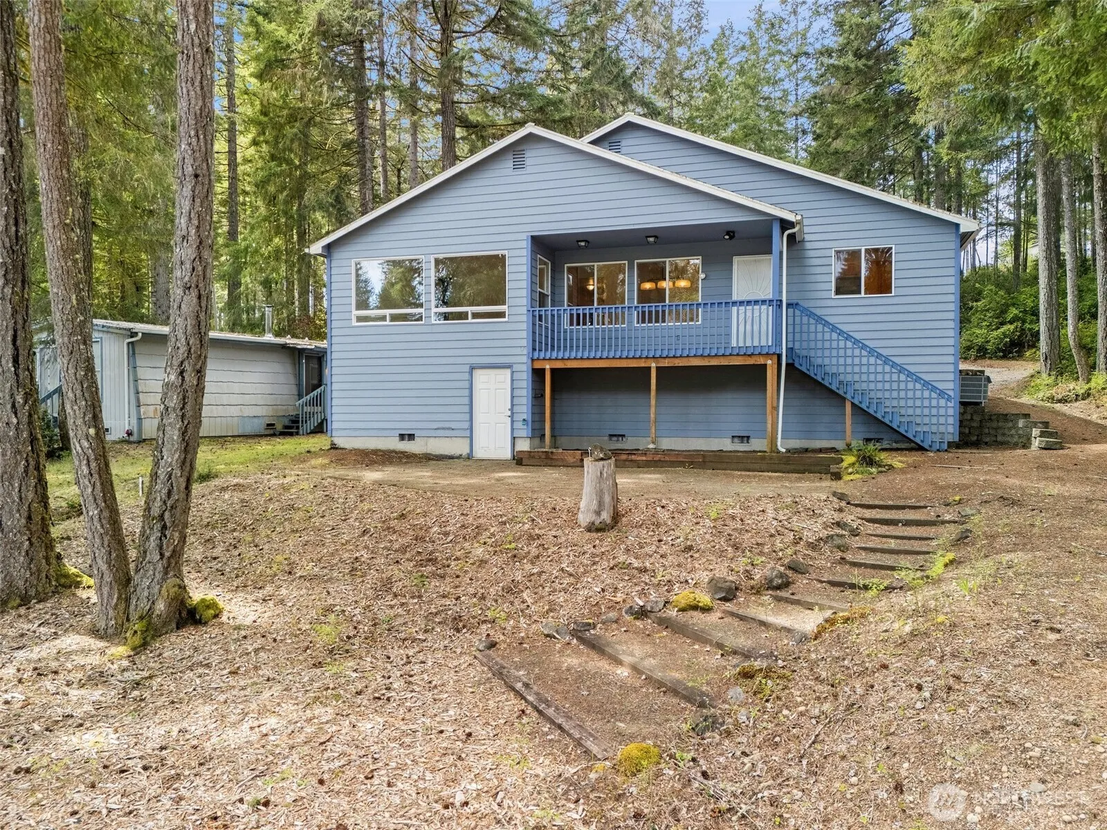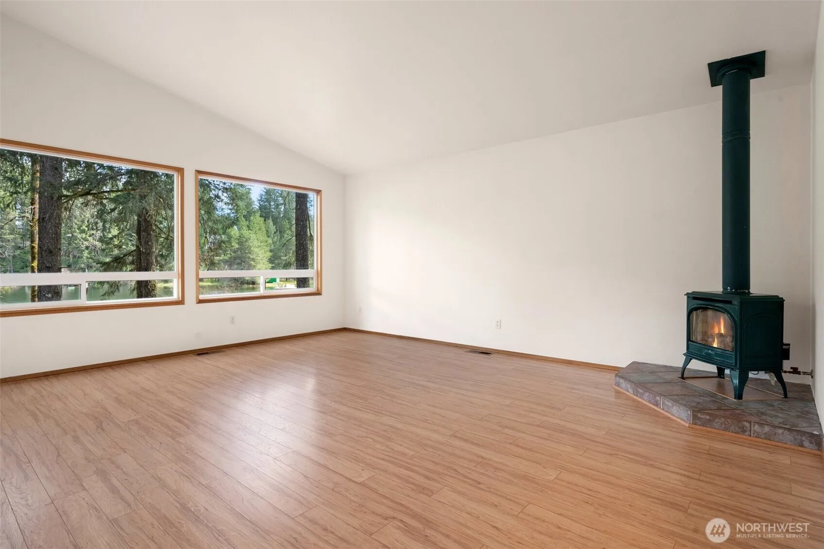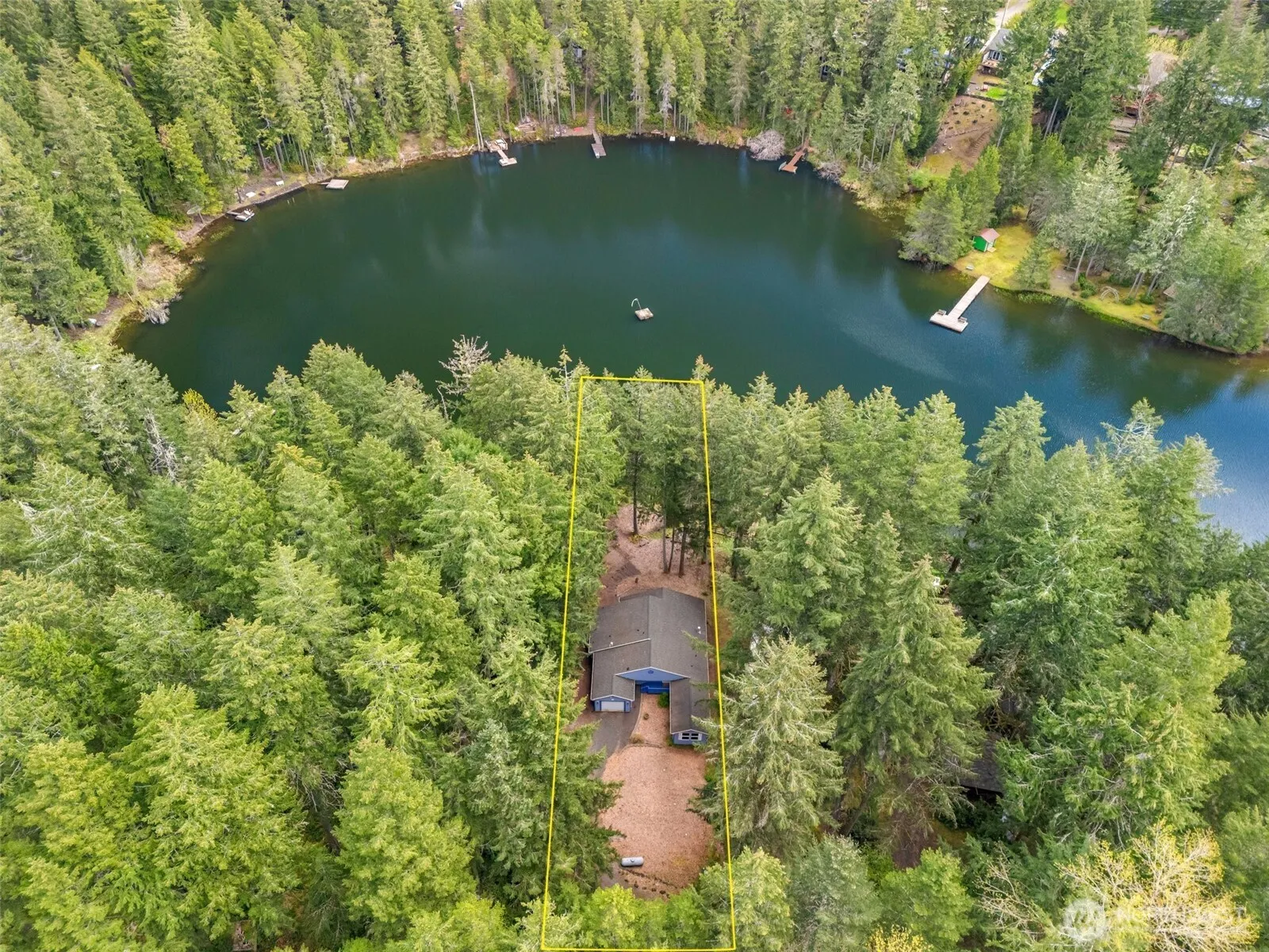 Live the Lake Life! This charming single-level home is a rare gem, perfectly situated on the peaceful shores of Emerald Lake. Enjoy an open, light-filled floor plan w/ vaulted ceilings and serene lake views. The spacious kitchen boasts solid surface countertops, ample cabinetry, and flows effortlessly into the living and dining areas. Laminate flooring, a cozy propane stove, and a heat pump ensure comfort year-round. Home includes 3 bedrooms (with 2-br septic approval) and 2 baths. The primary suite features a walk-in closet and a step-in shower. Step outside to a covered lakeside deck. A partially finished 750 SF basement provides space for hobbies, workshop, or extra storage. Emerald Lake offers access to a boat launch, dock, and park.