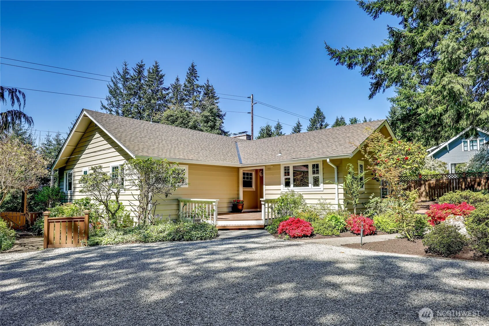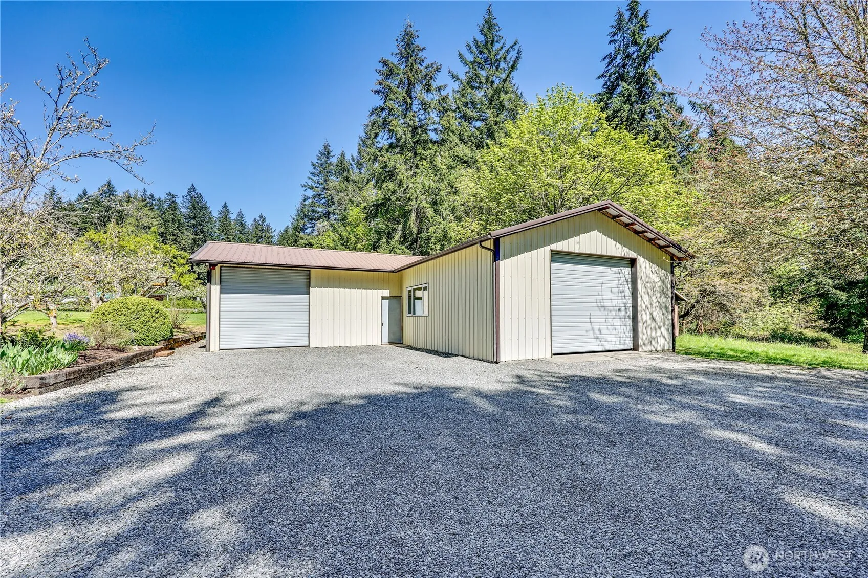 A true gem in Rolling Bay—offering privacy, tranquility, and endless potential. On the market for the first time, this 1.6-acre estate spans two parcels and features a light-filled 3BD/2BA home with a cozy living room, spacious eat-in kitchen, den, bonus room, and detached two-car garage. Designed for seamless indoor-outdoor living, the property includes mature landscaped gardens, wooded trails, and space to plant your own garden. The 1,728 sq ft outbuilding provides versatile use for artists, car enthusiasts, or hobbyists. A rare opportunity in a coveted Bainbridge location—ready for its next chapter.