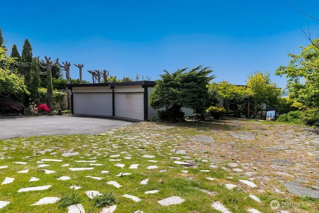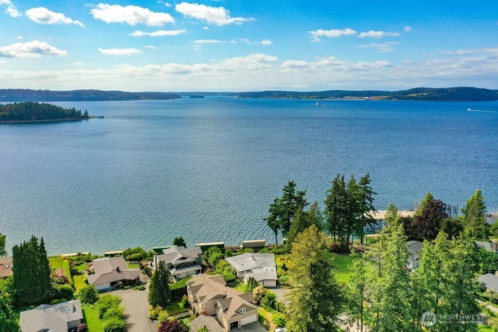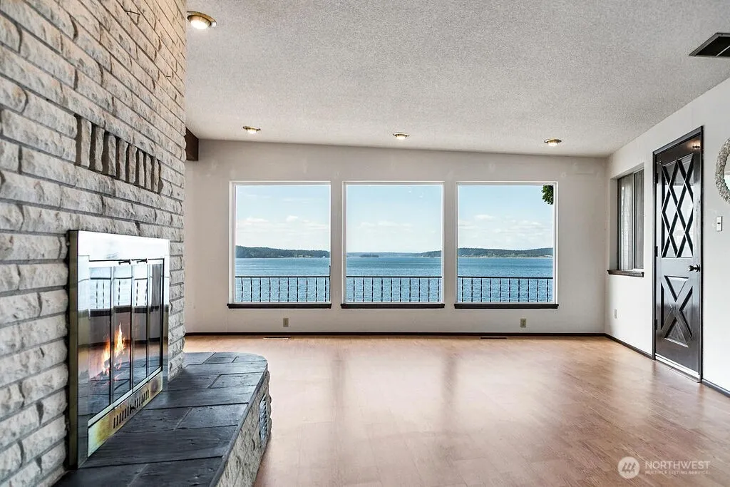 Stunning Mid-Century Modern with Panoramic Sound, Sunset & Mountain Views! This one-of-a-kind home offers 180 degrees of breathtaking water & mountain vistas. 3,270 sq ft of finished living space, featuring a spacious kitchen with granite countertops & a living room showcasing a wall of windows that perfectly frame the views. The main floor offers a generous primary suite w/attached full bath, two add’l bedrooms & a ¾ guest bath. Enjoy cozy evenings by the wood-burning fireplace in the inviting living room. Downstairs, discover a sprawling family room with a double-sided fireplace, direct backyard access & in-ground pool with surrounding deck. A private lower-level bedroom with its own entrance is ideal for guests or a home office.