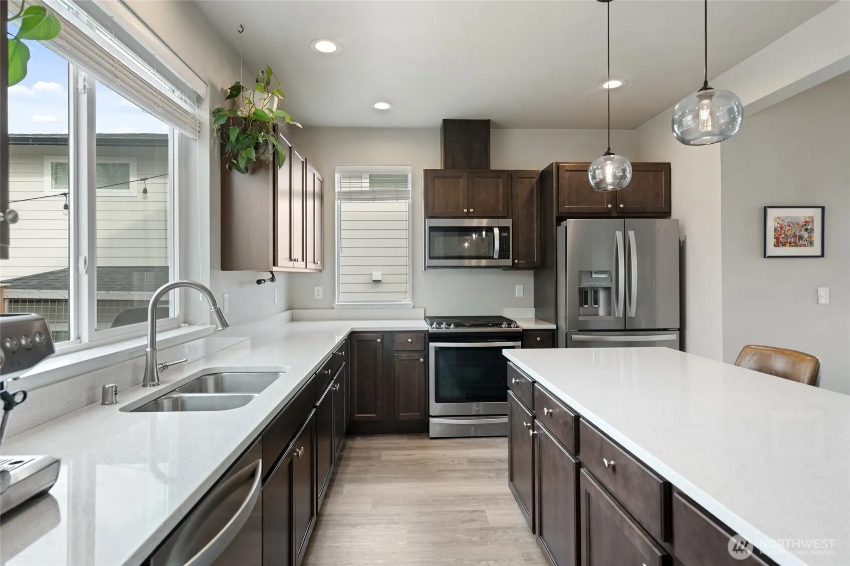 NEW PRICE! Watch the sunrise over Mt Baker with ease in this ‘turn-key” home that offers a spacious open-concept layout that blends comfort w/ sophistication. The primary ensuite includes a 5 piece bath, walk in closet & a private covered deck w/ sweeping mountain views. Impressive windowing that frames the stunning landscapes & captures natural sunlight. Upgraded lighting, built-ins & designer finishes throughout. Oversized garage w/ overhead storage—ample space for vehicles, gear & more. Upgraded patio & lush landscaping create an inviting outdoor oasis. Large, flat, fully fenced backyard—ideal for play, pets, relaxation and entertaining. Come experience luxury & the beauty of Mt. Baker! Don’t miss it1