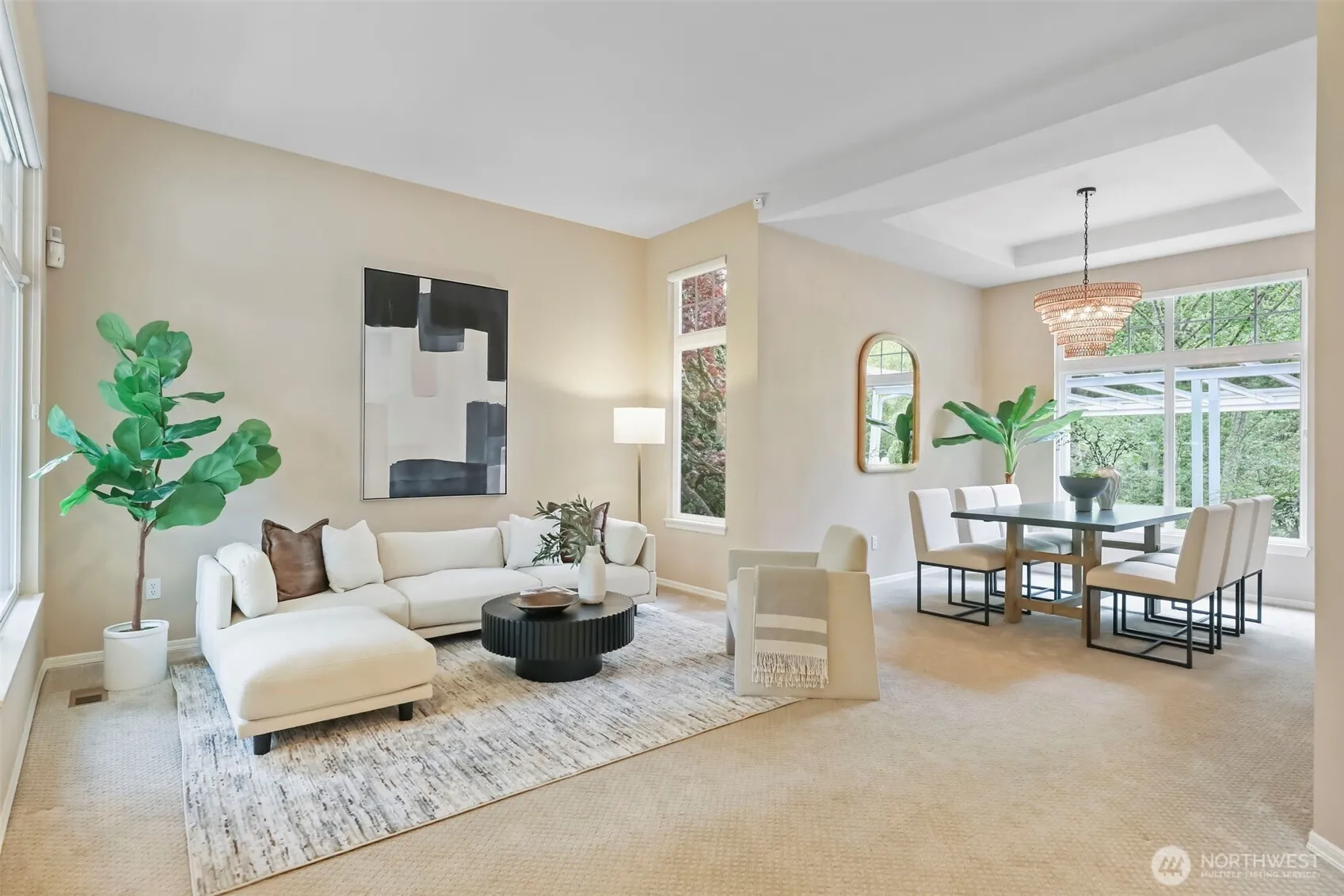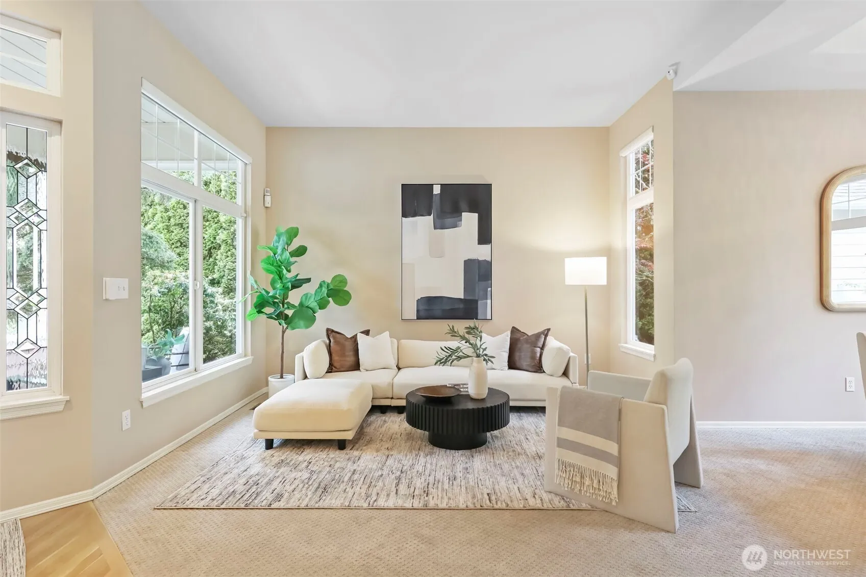Gorgeous 4 bdrm/2.5 bth 2 story w/partial sound view in sought after One Clubhouse Lane. Private setting on 14th fairway at the end of a cul-de-sac. Chef’s dream large & open kitchen w/modern stainless appliances, gas cooking, solid stone counters, wood floors, tile backsplash, insta-hot, eating bar & nook. Adjacent formal dining/living & family room, nice indoor/outdoor entertaining w/2 large covered decks, covered front porch, grass areas & beautiful gardens. Spacious Primary w/5 piece bath, walk-in closet & soaking tub. Glimpses of the golf course, private greenbelt & sound, comfy A/C, gas fireplace, skylights, modern carpeting, main floor office w built ins, Great schools, neighborhood parks, trails, close to shopping & public beach.