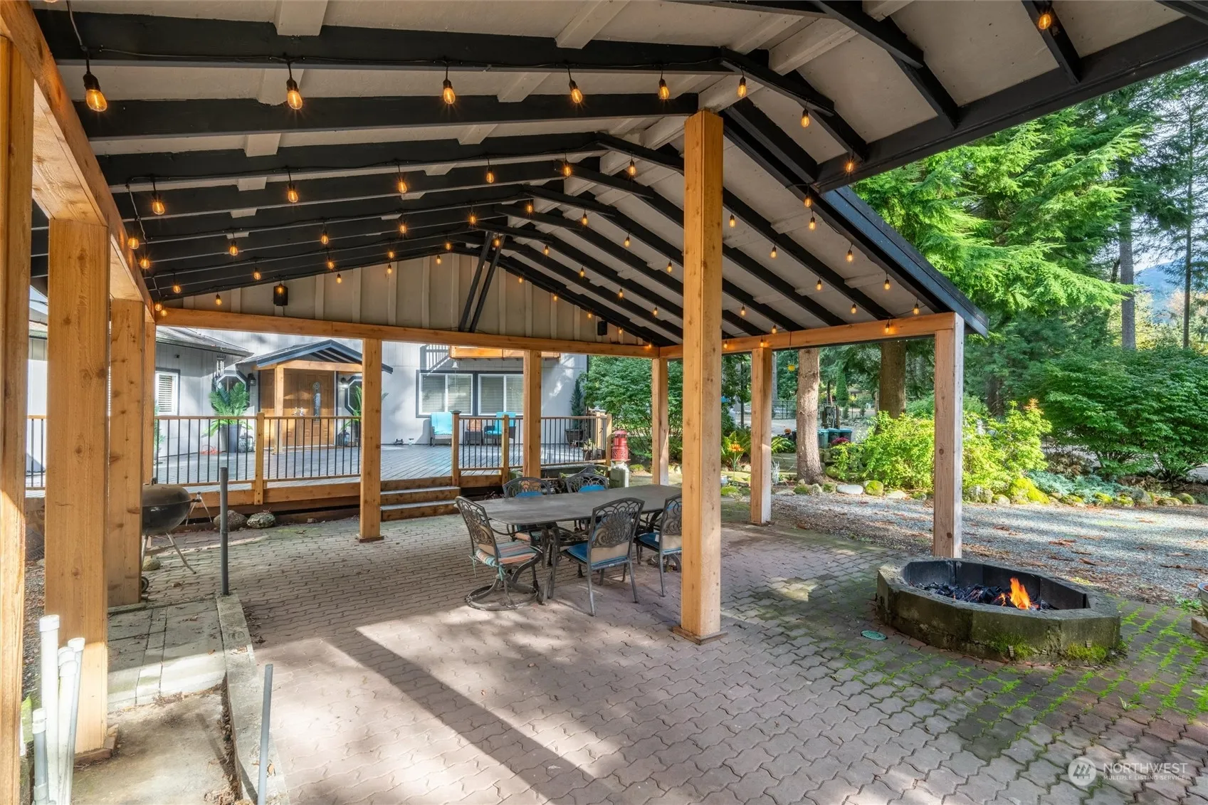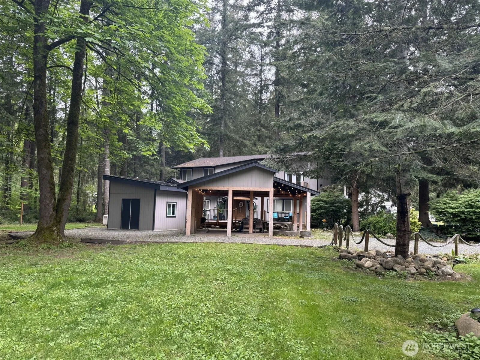 Welcome to Ida Lane. Experience the peace & tranquility of this beautiful & private park like setting. Fully fenced property nestled within the beautiful PNW evergreens. Enjoy afternoons on your expansive deck or next to the firepit under your pavilion covered patio. The openness of the entire grounds provides endless options. Home boasts 2 master bedrooms perfect for multigenerational living. Property includes a separate shop space with multiple covered areas for vehicles, boats, toys or projects. Other features: Full RV hookups w/clean out for additional living option, garden beds, chicken coop, jacuzzi tub, security system, etc. Too many recent improvements to list! Make this incredible property yours!