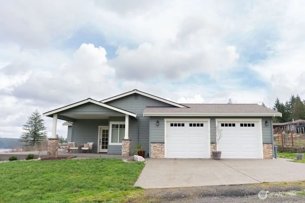 With views like this, who needs to go on vacation? Daily soak up the incredible sights of nature on the Hood Canal w Olympic Mountains as backdrop! Walls of windows in this gorgeous one-level home bring it all indoors. Built in the Craftsman style, this beauty charms with its wood-wrapped windows, vaulted plank ceiling & exposed beams, wide trim, & solid wood floors/doors throughout. Crown molding, board & batten detailing, and coved archways add to the character & style. The cozy great room (stone fireplace!), dreamy kitchen (walk-in pantry!), primary bedroom (granite/tile bath & WIC!), and the expansive patio ALL allow you to enjoy stunningly picturesque vistas all year. You will feel right at home and it will truly take your breath away!