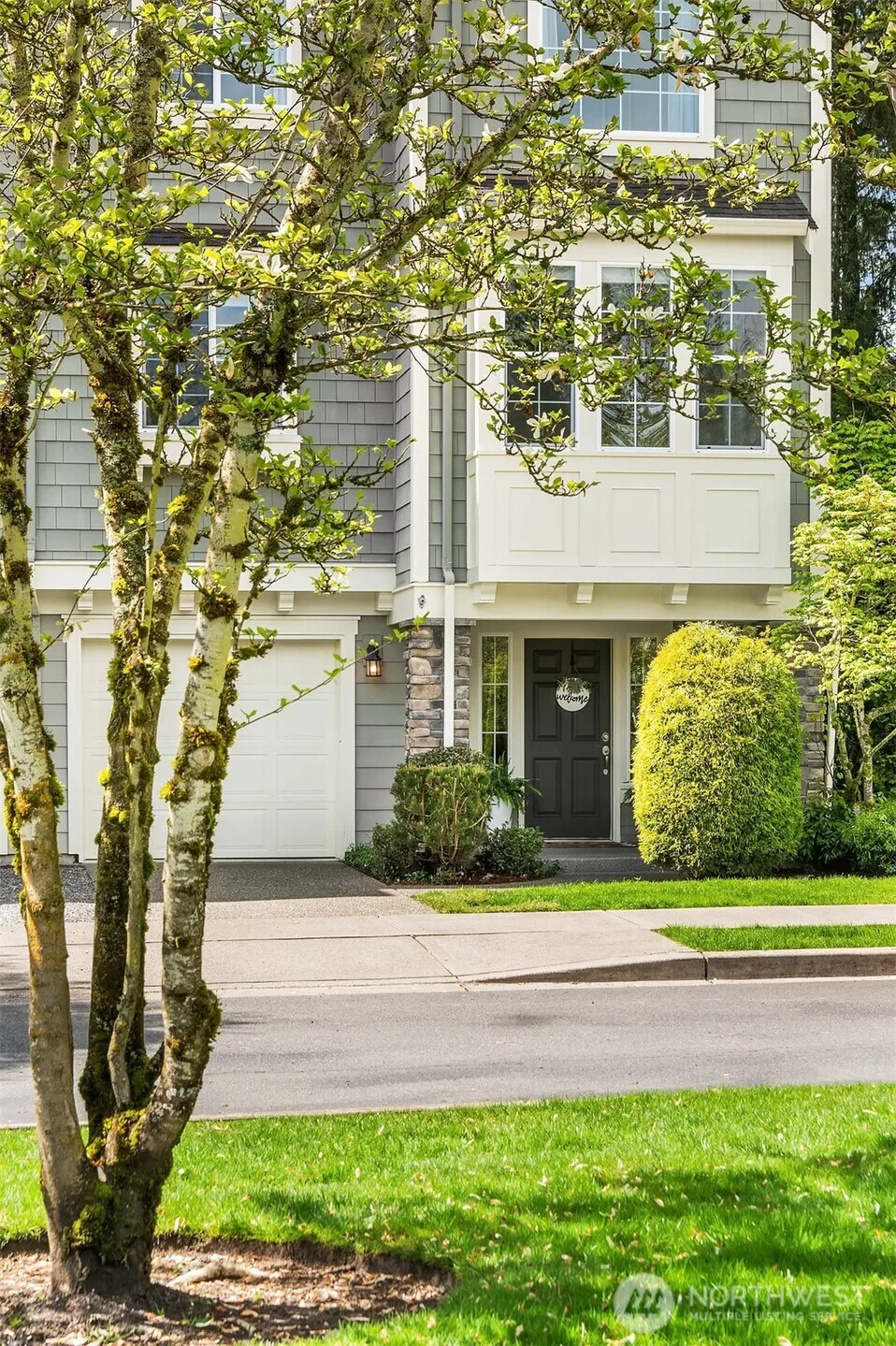 Nestled in the heart of Snoqualmie Ridge, this elegant CamWest-built townhouse offers 4 bedrooms, den & 2.5 baths with stunning surroundings & privacy. Signature build quality shines in every detail blending comfort, functionality and flexibility. The modern open floorplan with spacious living areas and endless windows welcomes a natural view at every turn which is a must see to appreciate. Revel in the gourmet kitchen with granite island, ss appliances & ample storage. Enjoy the sundrenched patio backing onto the most beautiful greenbelt & surprisingly spacious backyard. Location is key, with all the Ridge amenities, shopping, eateries, parks, scenic trails & the most ideal I-90 commute. Enjoy this vibrant community & exceptional schools.