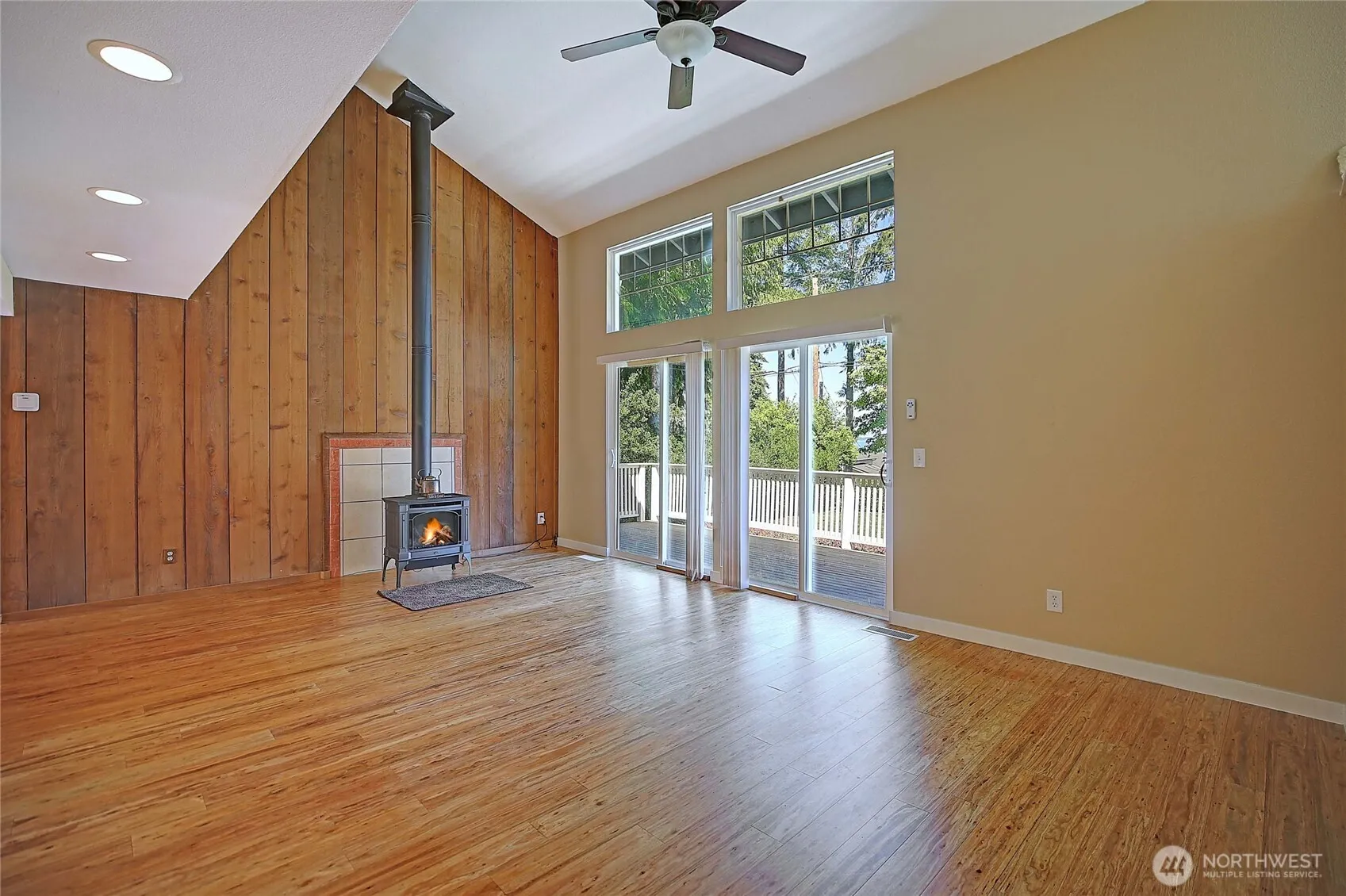 Welcome to this charming home featuring an open floor plan with bamboo flooring, natural gas, free standing stove, large windows to showcase the beautiful views. Efficient furnace and A/C for all year comfort. Two expansive decks provide the perfect area for entertaining and relaxing. Upstairs, you will find a full bathroom, primary bedroom with a walk-in closet along with a guest bedroom.This turn-key home is on a shy 1/2 acre with no HOA. The attached 4 car garage (22×40) includes a loft and is equipped with 220 amp power, ideal for welding and other projects. A 10 x 20 shed in the fenced level backyard offers additional workshop or storage space. Fantastic gated beach rights with a boat launch is a few blocks away, great crabbing area.