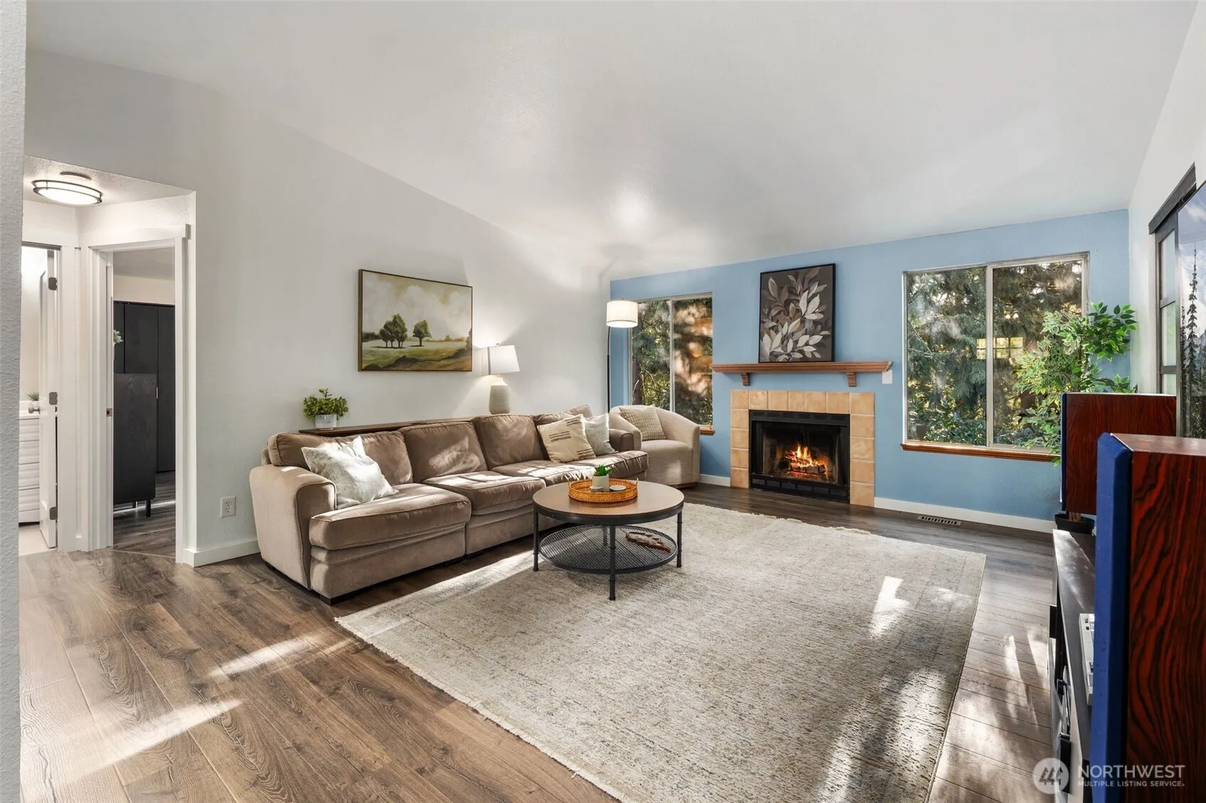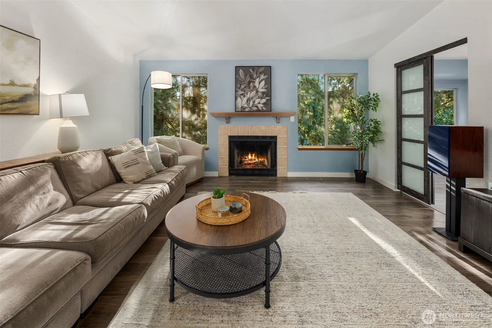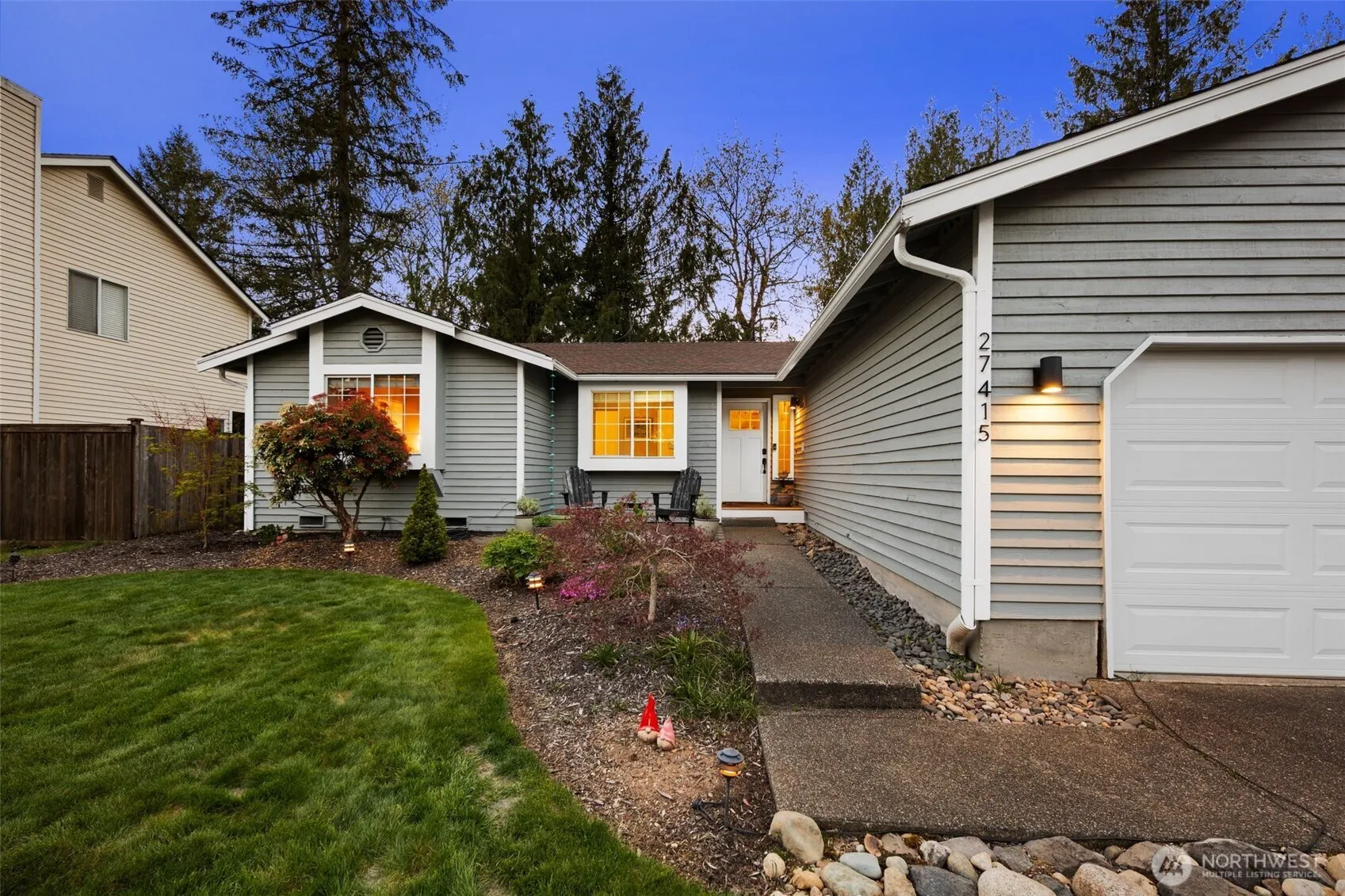 Rare Maple Valley Rambler backing to serene woodlands—enjoy year-round views & ultimate privacy! Soaring vaulted ceilings greet you in this floor plan w/ newer wide-plank, wood-look floors & showcased nature views separated by a cozy fireplace. The flexible layout allows for 2 living areas, an office or dining room. Chef’s kitchen w/ stainless steel appliances to stay & a new BOSCH furnace & central A/C means comfort all summer. The newly paved front patio & manicured lawn add major curb appeal. BBQ, entertain or relax in the peaceful backyard. Steps to Elk Run Farm, Trail Park & golf. Just 1 mi to 4-Corners restaurants, groceries, shops & Dr’s. Plus, top notch Mt. Tahoma school district! Pre-inspected & move-in ready!