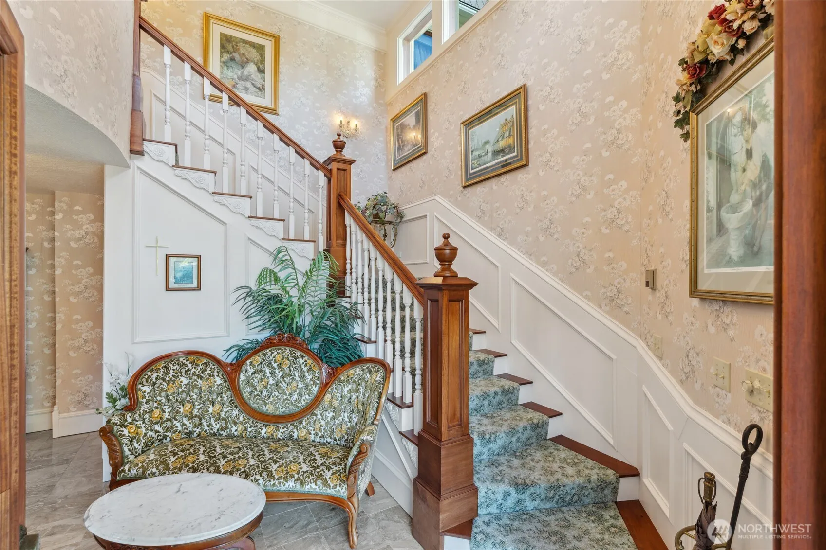 Step into timeless elegance with this beautifully preserved Victorian home in the heart of Cap Sante, offering stunning views of the bay, islands, and mountains. Rich with original woodwork and historic charm, the main home features a grand parlor, a cozy sitting room, & an open-concept kitchen, dining, & living area perfect for entertaining. The fully finished basement adds versatility with a rec room, office, extra bedroom, and bath. A separate apartment with a dramatic two-story entrance and elevator provides privacy & convenience. Enjoy year-round outdoor living with a central courtyard, patio, & enclosed upper decks, all designed to capture the home’s breathtaking surroundings.
