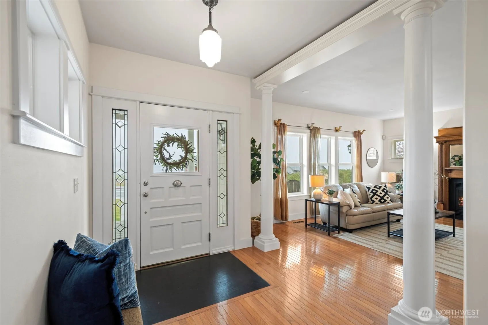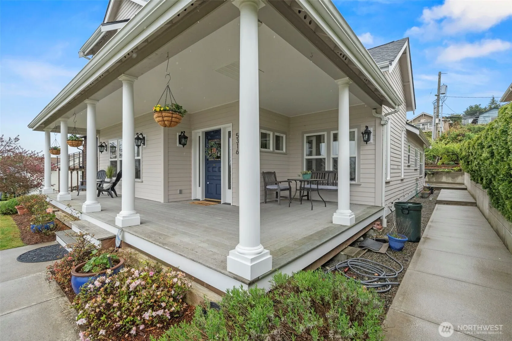 Quality built Ruston home with a fusion of contemporary & classic architectural styles, complemented by partial views of the Puget Sound & Olympic Mountains. Big living spaces, tall ceilings & modern finishes. Spacious living room features cozy gas fireplace & abundant natural light. Newly updated gourmet kitchen, granite countertops, stainless appliances, and state-of-the-art gas range. Hardwood floors paired with an exquisite staircase. Formal dining room seats 8-10. Primary bedroom offers a private deck with lovely views. Primary & guest bathrooms have been renovated with marble tile or luxury vinyl plank. Enormous bonus room located over the garage. New 30-year roof & exterior paint. Situated within blocks from Point Ruston waterfront.