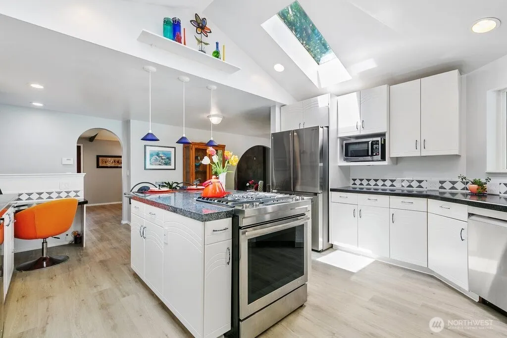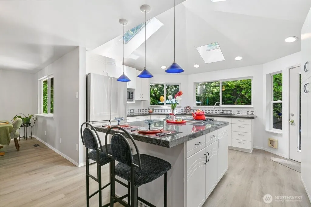 Tucked in a quiet, park-like setting, this thoughtfully updated home offers privacy, nature, & convenience on a .31 acre lot. Solar panels installed in 2022 keep energy costs low, while the upgraded kitchen (new appl. in 2024) features granite & crushed granite composite countertops—perfect for cooking & entertaining. The spacious layout includes a large kitchen, generous patio, &a serene primary suite w/ .75 bath en suite (updated in 2023). Bonus room off the kitchen, currently used as a media room is perfect for year round entertaining. Additional perks include new flooring, ample storage, & a detached studio w/power. Enjoy the sound of owls at night, & a short walk to the beach. Friendly Seahurst neighborhood w/events & community spirit.