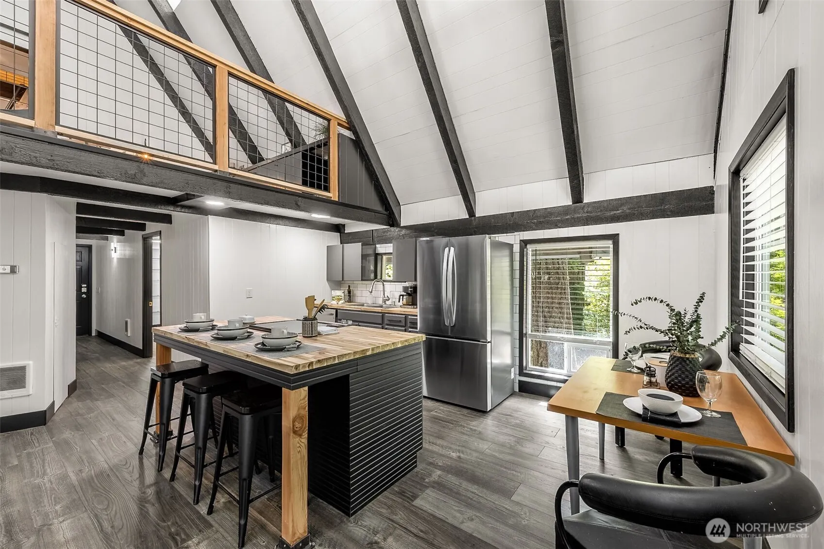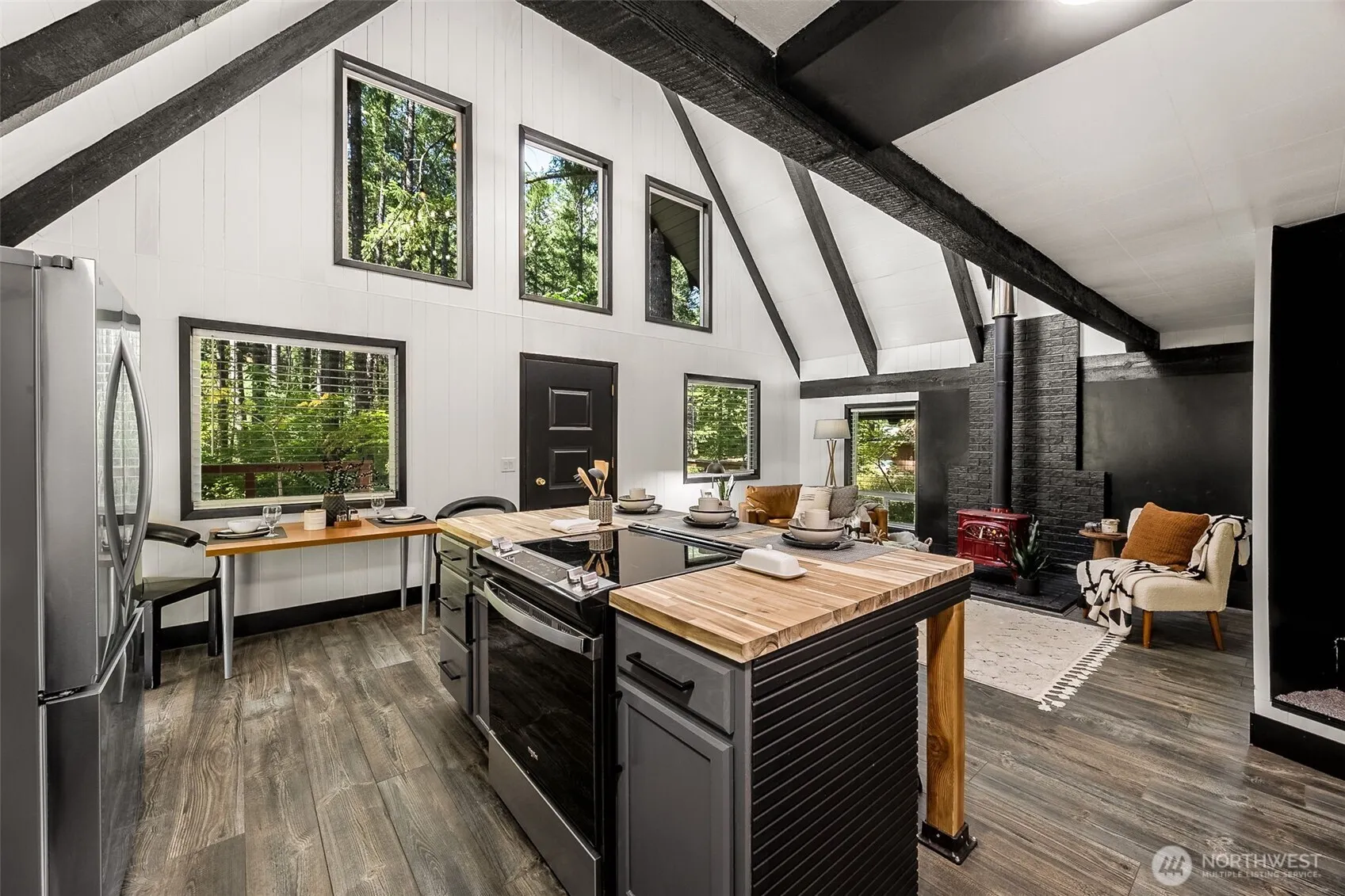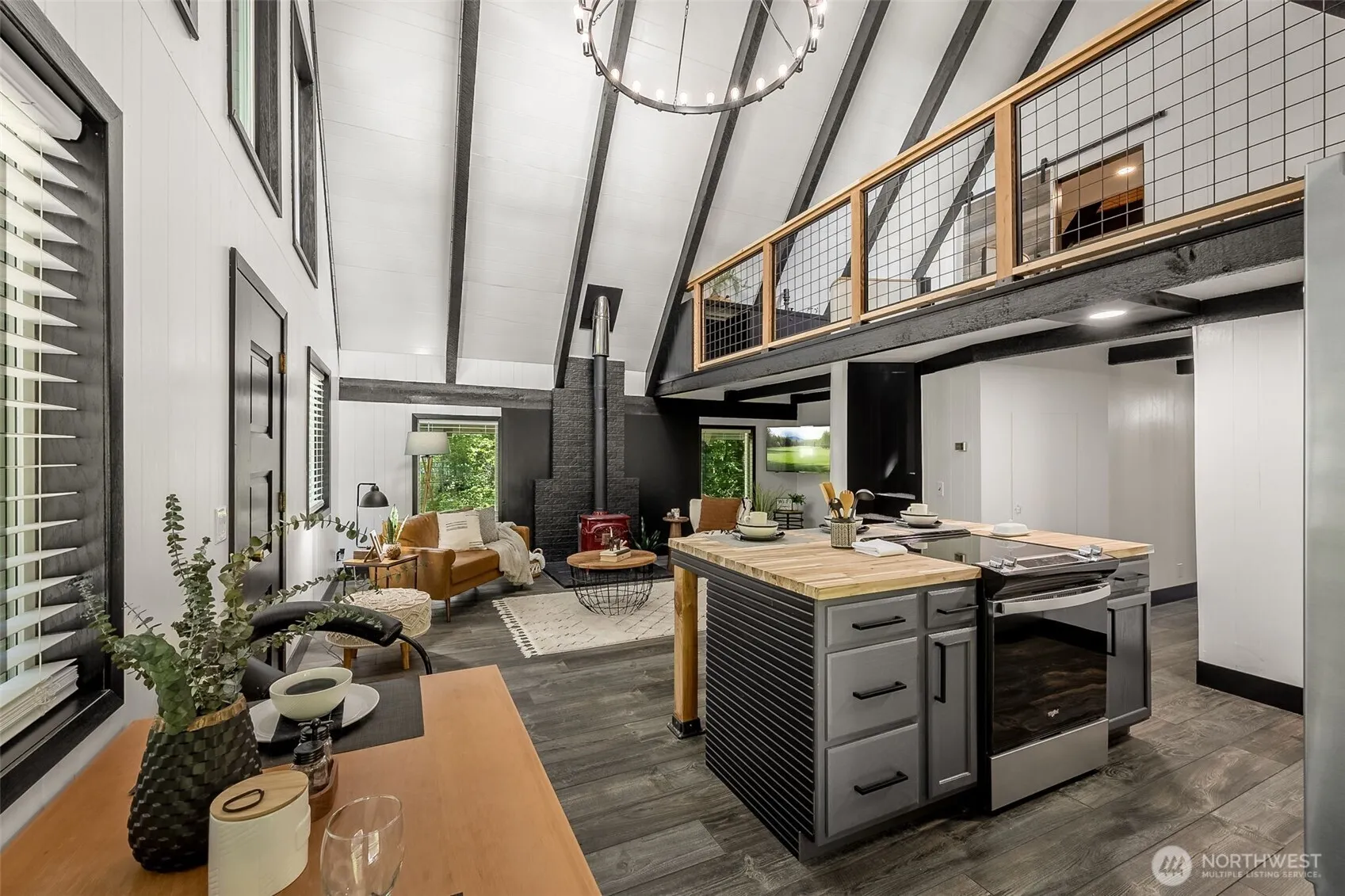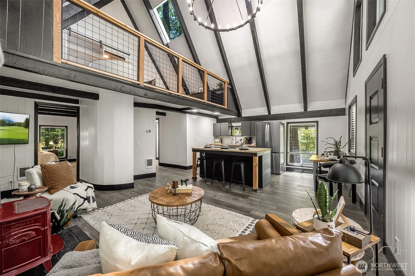 Welcome to this completely remodeled A-Frame in the heart of Packwood. Step onto laminate floors as you enter the wide open kitchen showcasing stainless steel appliances, butcher block counters & tile backsplash. Enjoy special aspects of this iconic architectural style like soaring ceilings, exposed wooden beams, built-in loft area & added sleeping nooks to maximize space for guests. Down the highway from White Pass Ski Resort, this is the perfect respite after a day on the slopes! Oversized deck, outbuilding for storage, fire pit area to enjoy the quietness of this mountain town! Located within the High Valley community with membership to the pool, golf & clubhouse access. Perfect for your mountain getaway or short term rental investment.