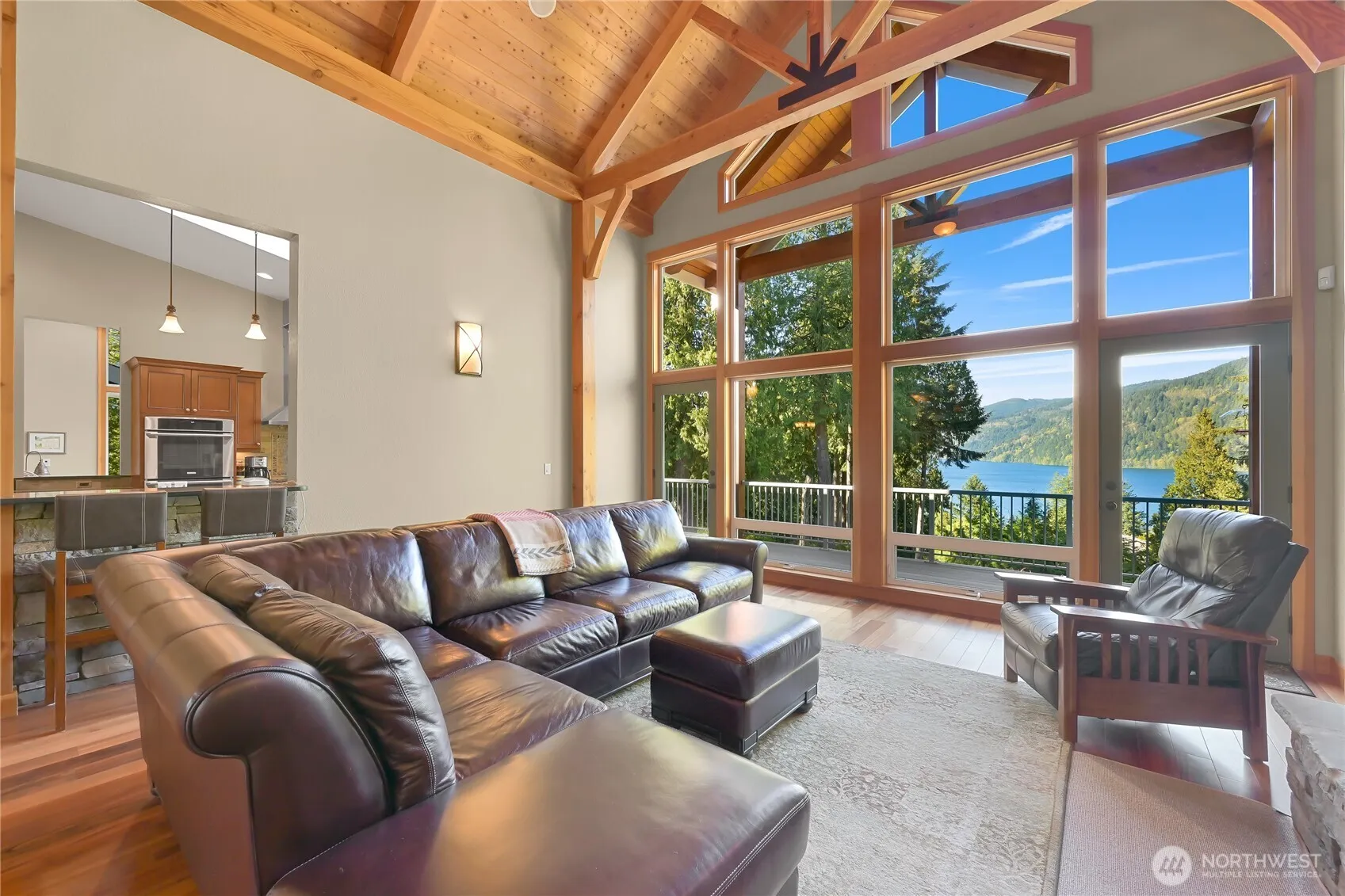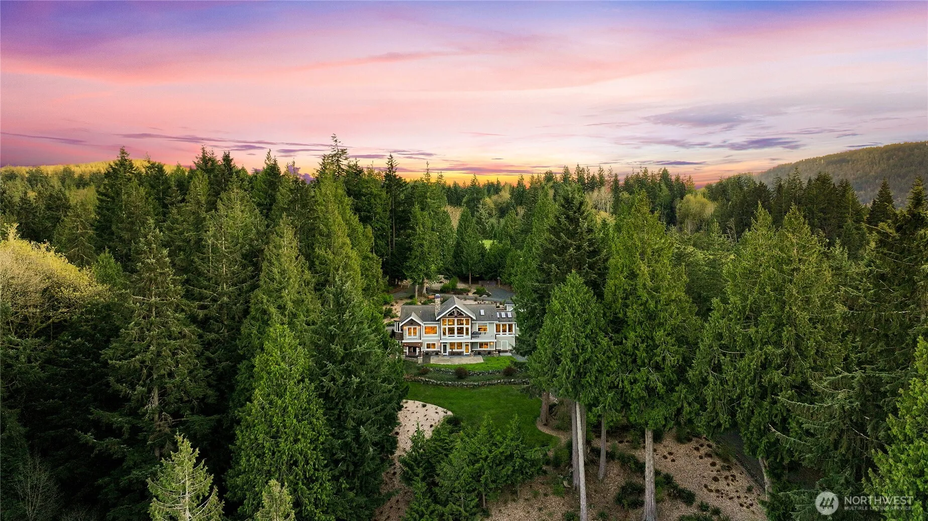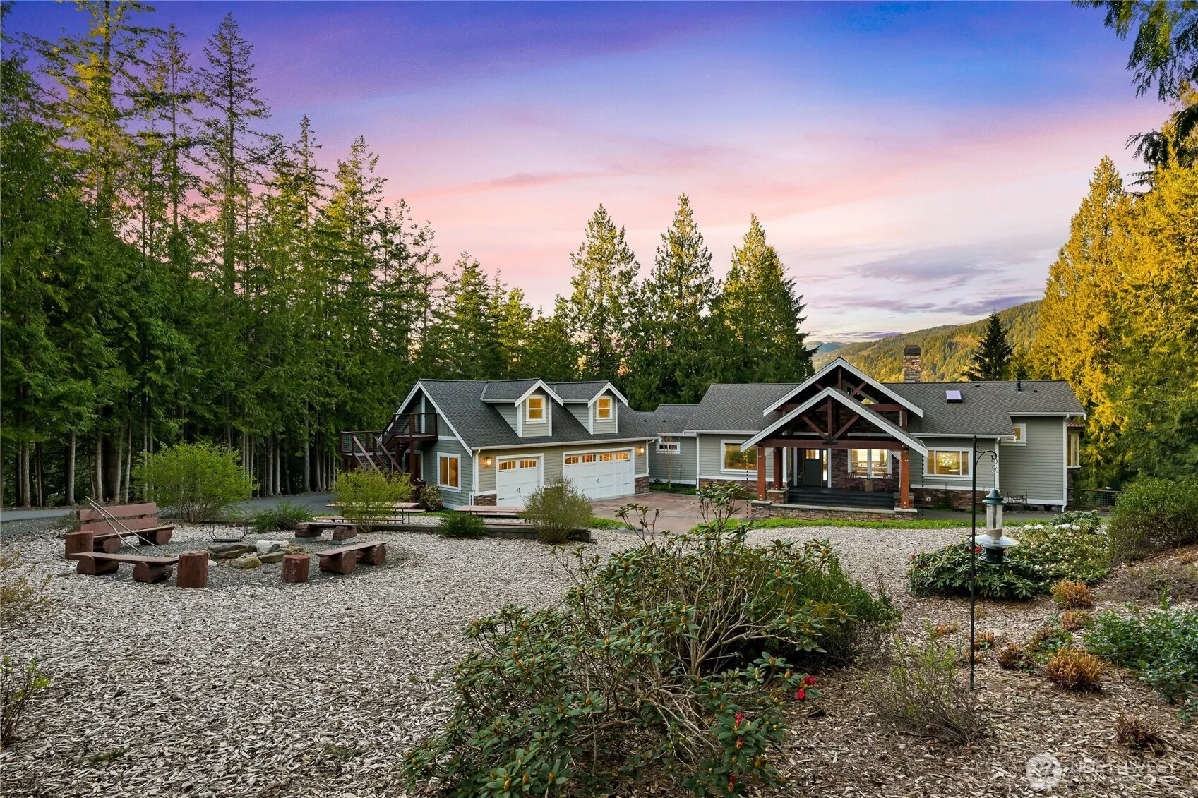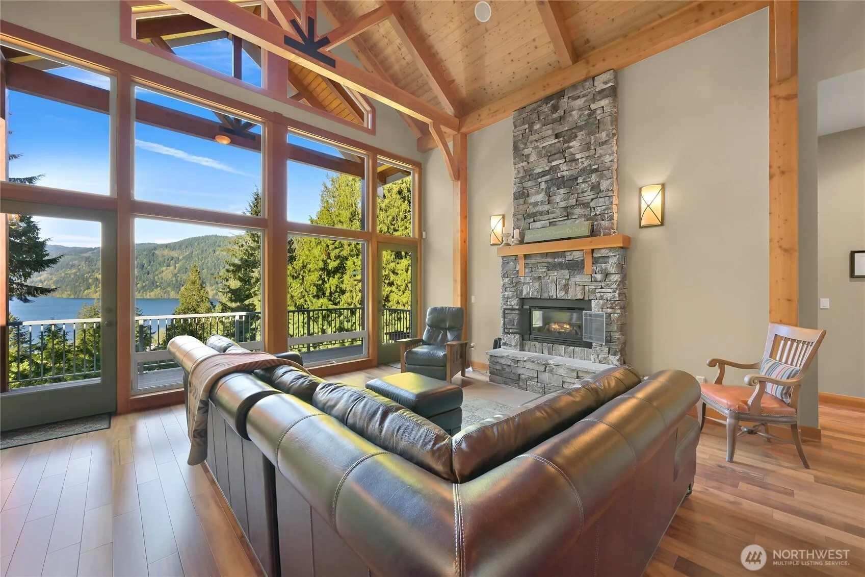 A STORYBOOK SETTING ON LAKE WHATCOM! Arrive through the gate to a long, meandering & paved tree-lined circular drive to your extraordinarily custom 4,600 sq/ft lodge-style estate enveloped by over 4 lush acres. The home flows seamlessly blending indoor and outdoor spaces that embraces nature’s beauty. Uniquely all the wood trim and beams were milled from the property. Features include a grand covered entry, two story great room with 18 foot walls of glass, sumptuous primary suite, 3 stone fireplaces, multiple living areas and decks, and so much more. A rare opportunity to acquire a property with the utmost in privacy combined with the fun of waterfront activities on Lake Whatcom. An incredible property and your chance to experience it all!