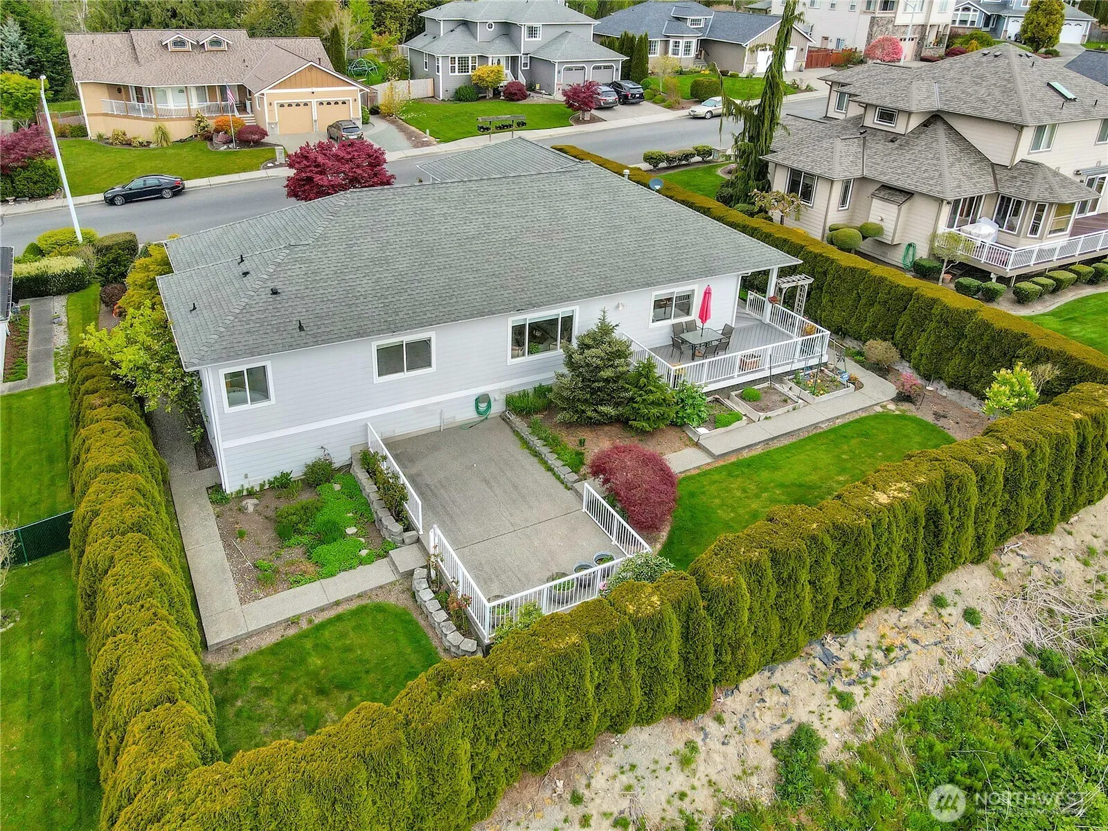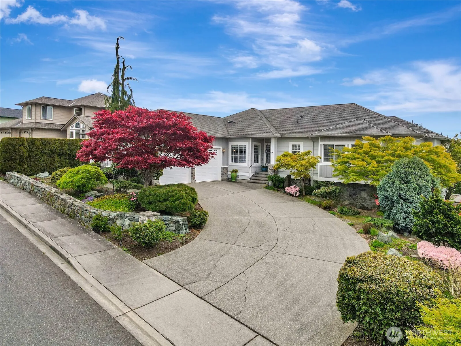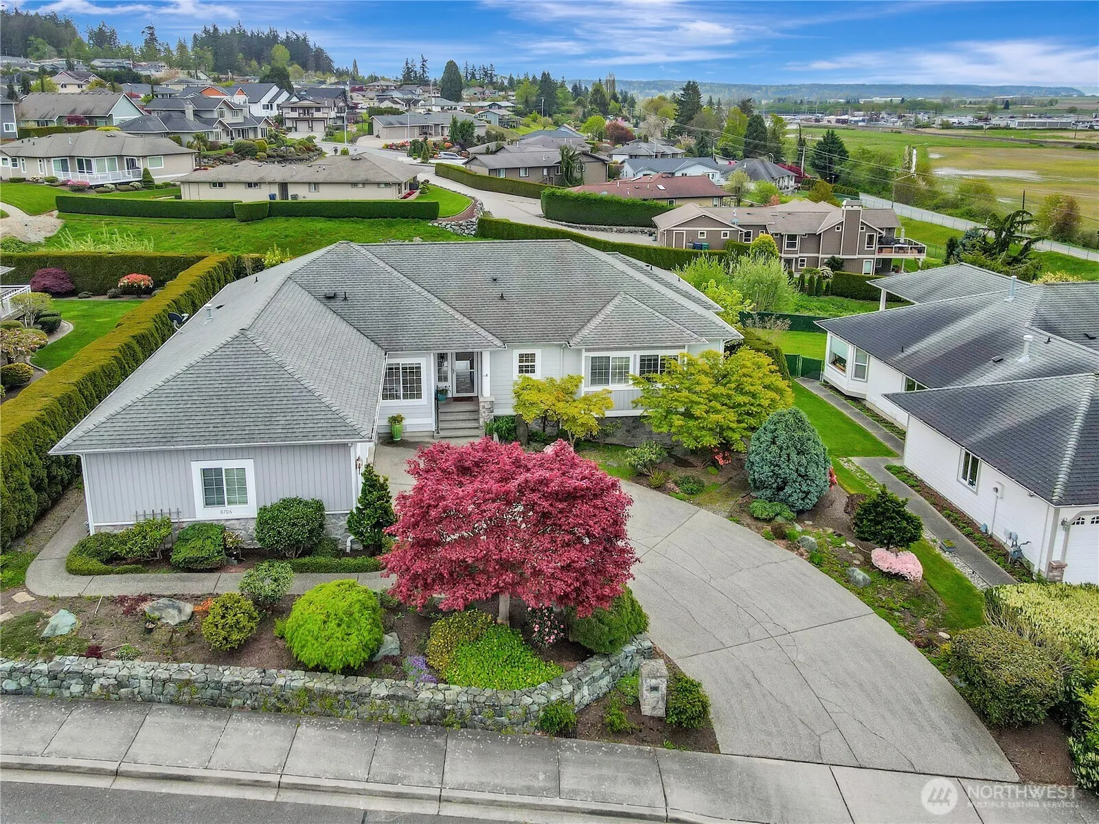 Pride of Ownership! This immaculate rambler located in upscale Pioneer Hills is the comfortable home you are looking for. Homes in this neighborhood are seldom up for sale. Long-term neighbors are happy with the quality of their homes and content with the peaceful neighborhood. Views of Stanwood, Port Susan/Camano Island, farm fields, and Skagit Bay. Landscaping professionally done, a beautiful rock wall separating you from the cul-de-sac. Native plants, no grass in the front yard, very tasteful. Backyard has 2 decks, a lawn, 8 foot privacy hedges, space and wiring for a hot tub. Inside, well taken care of, and has a recent heat pump, furnace, water heater. 3 beds, 2 baths, spacious kitchen, attached garage, storage under house. Beautiful!
