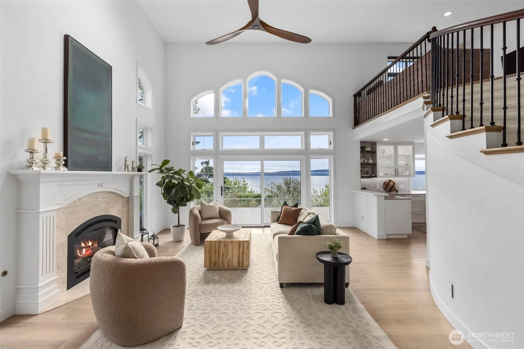 Waterfront with over $400K in improvements, this home offers unrivaled views that stretch across Puget Sound, framing the majesty of the Olympics & Maury Island. Upon entering, you will be greeted by soaring ceilings and white oak floors that flow seamlessly throughout the open concept home. The first floor offers a junior suite with views and its own private entrance. The chef’s kitchen is a focal point, with custom cabinetry, oversized island, quartzite countertops, and top-tier appliances. The primary suite features a modern spa-like bath and a custom walk-in closet. All just a short walk to your own private beach! Whether you want to take a kayak, walk to Saltwater Park, or play tennis at the North Beach CC, this house has it all!