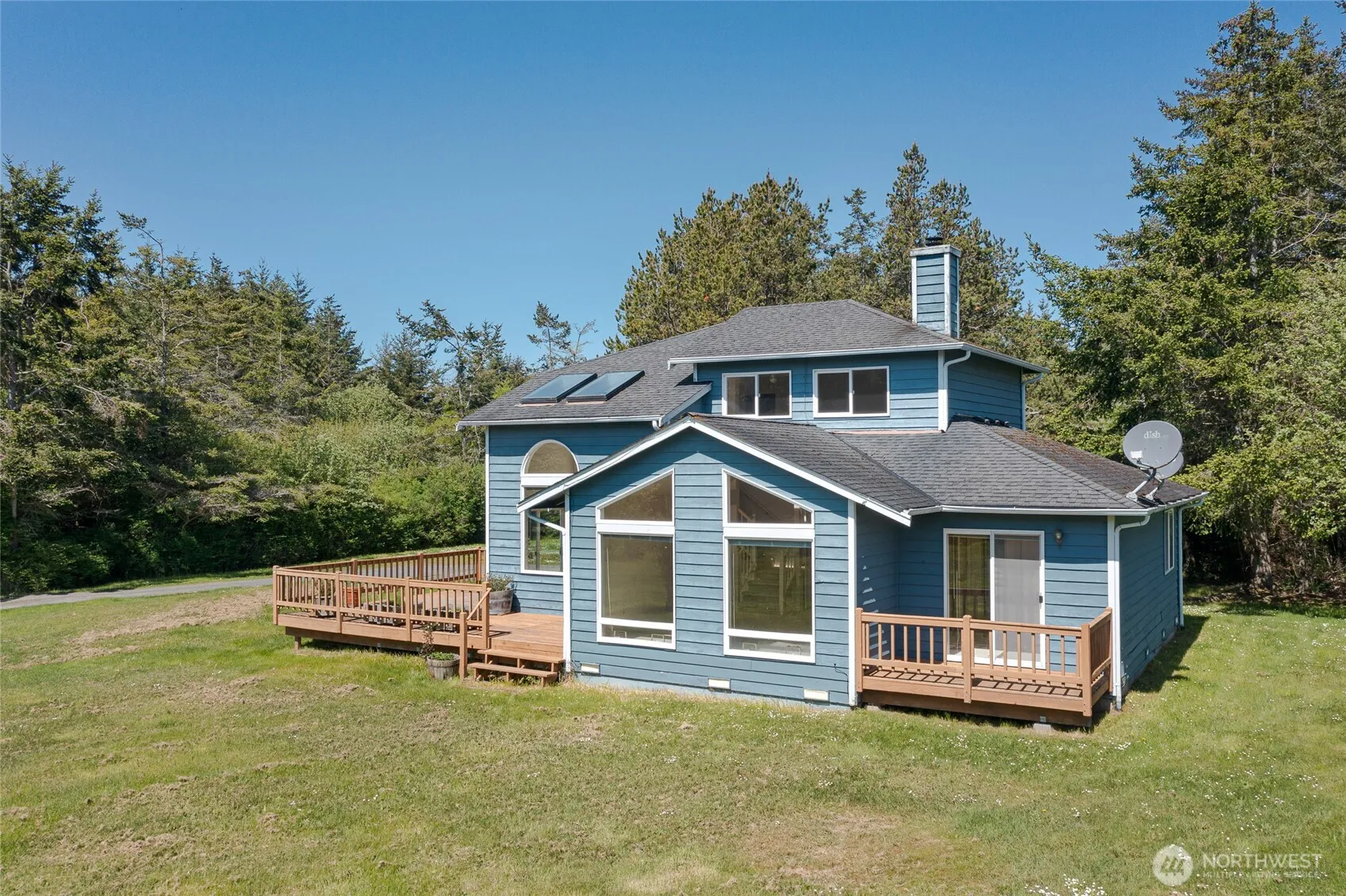 Welcome to this sunny 2.4-acre retreat in desirable Eagle Cove Estates. This 3-bed, 2-bath home offers a private setting, just a short stroll to American Camp trails or the private community beach with stunning views. Vaulted ceilings, skylights, and walls of windows fill the space with natural light. The upstairs primary suite opens to a versatile flex space overlooking the main living area. The functional kitchen offers ample storage, and the attached 2-car garage connects to a utility room with more storage. The deck and spacious yard offer great options for gardening and entertaining. Enjoy the island lifestyle in this amazing location on San Juan Island.