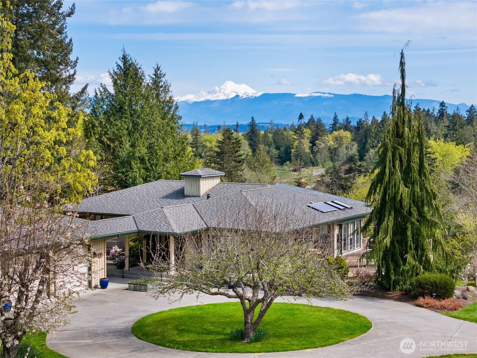 Secluded 10-acre Sanctuary with Mt. Baker & Cascade views, offering privacy, versatility, and natural beauty. Two 5-acre parcels include fenced pasture, fruit trees, Koi pond with waterfall, fenced organic gardens, and equestrian facilities including a 2-stall barn with hay and equipment storage plus a 60’ round pen. The newly designed gourmet kitchen features imported wide-plank flooring and opens to vast decks and patios ideal for entertaining. Enjoy a sunroom, home theater, and lower-level library with gas fireplace, all surrounded by a Mediterranean-inspired garden setting. Gated entry, circular drive, RV parking, and a 700± sq ft heated studio/shop complete this one-of-a-kind retreat! Ask your agent for the Features List.