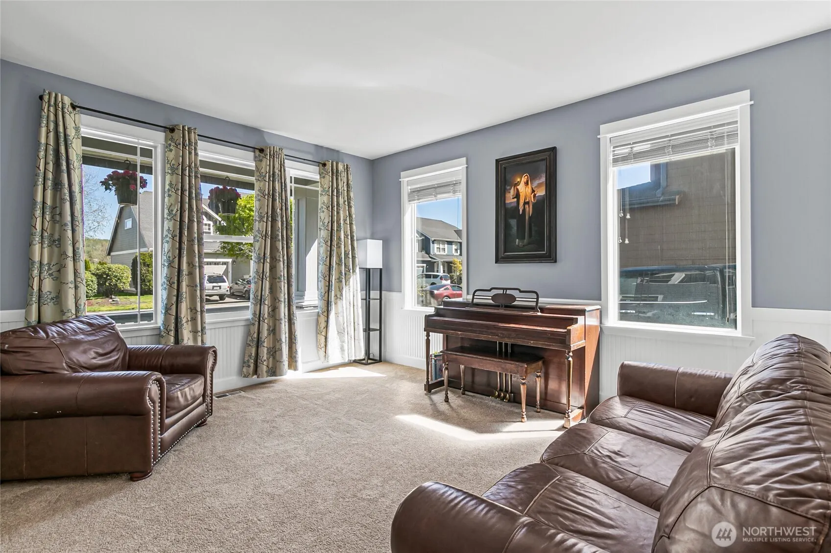 Stunning, Former Model Home at Cedars Bend features 3,521sf of Luxurious Living. Situated just steps from a meandering section of the Puyallup River, this home sits at the back of a gated Community in Sumner SD! Take in the 20′ soaring ceiling over head and custom hardwoods with oversized trim at your feet. Enjoy a traditional layout with a formal sitting room (or timeout room) and dining room in off the foyer, a BEAUTIFULLY updated kitchen w/ sleek finishes, slab quartz, oversized island with seating for 6+ to gather around. Step out onto your oversized, covered patio or enjoy campfires under the stars in the back yard. Upstairs, you’ll experience a primary suite right out of HGTV, 3 add’l bedrooms, utility room, and a fun movie room!