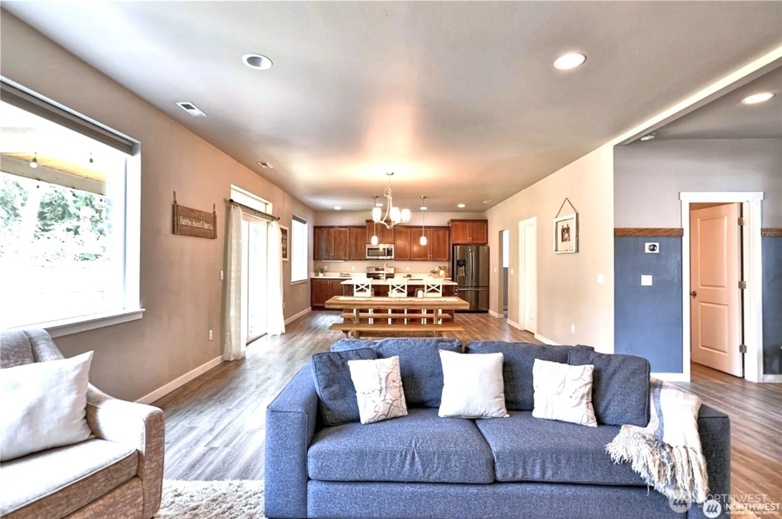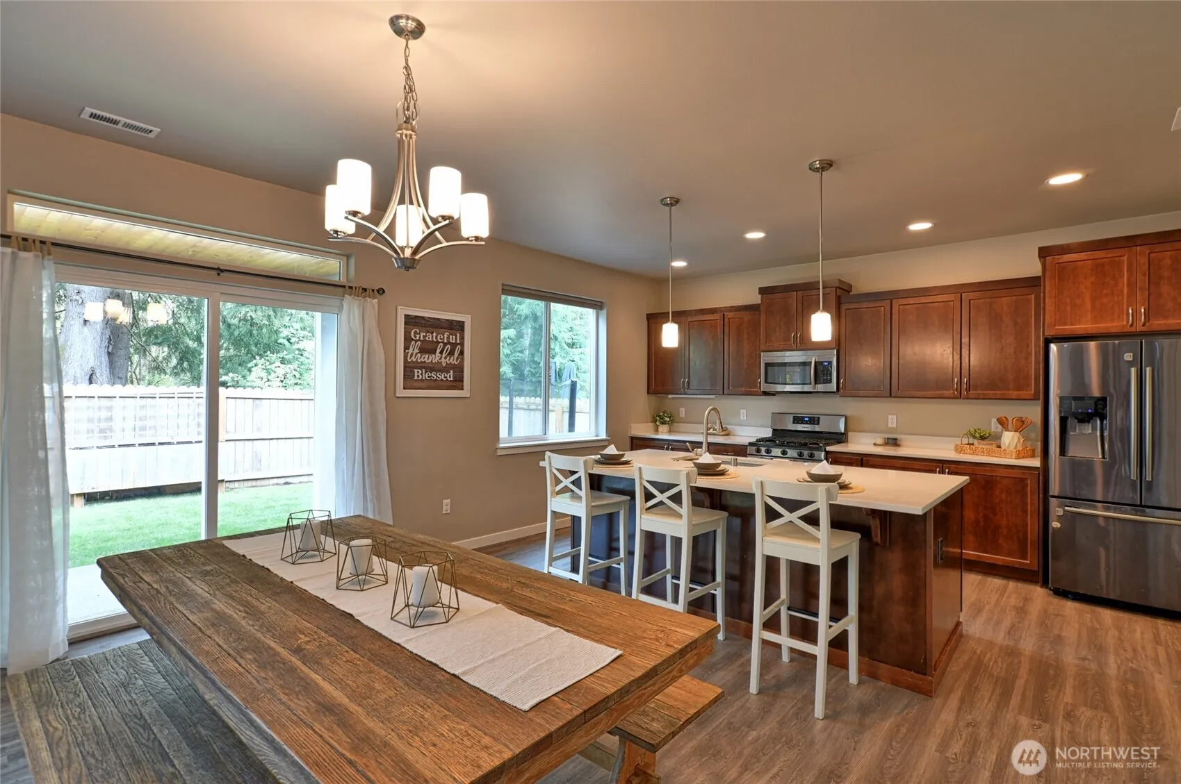 Motivated Seller! This stunning 4-bed, 2.5-bath home blends comfort, style, and thoughtful design throughout. The open-concept layout features soft neutral tones, abundant natural light, and a versatile den/office space. Step in to the great room and relax by the luxurious stone-surround gas fireplace, flowing into a chef’s kitchen with quartz counters, large island, walk-in pantry, and ample storage, perfect for entertaining. Upstairs, has 4 large bedroom all with large walk-in closets. Enjoy relaxing in the spacious primary suite with vaulted ceilings, peaceful greenery views, and a huge walk-in closet with built-ins. Enjoy the air conditioning or relax under the covered patio. Beautiful walking trails, as so much more!