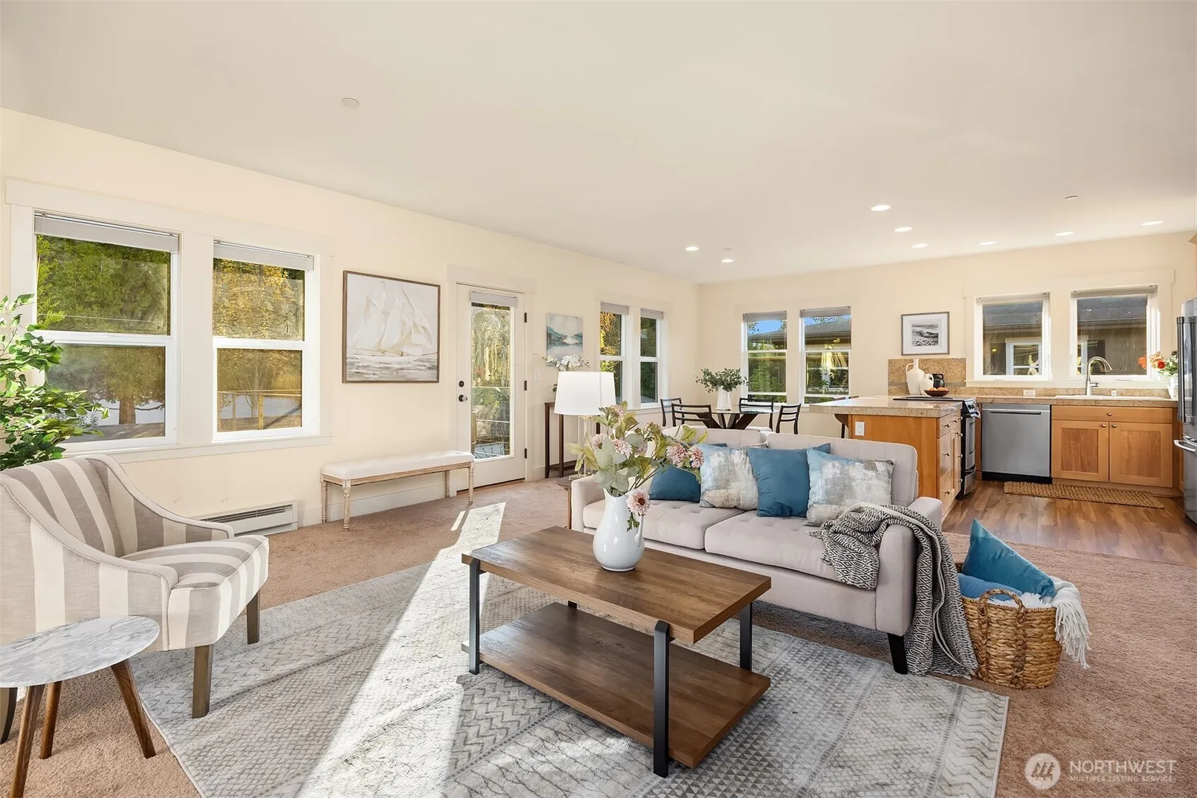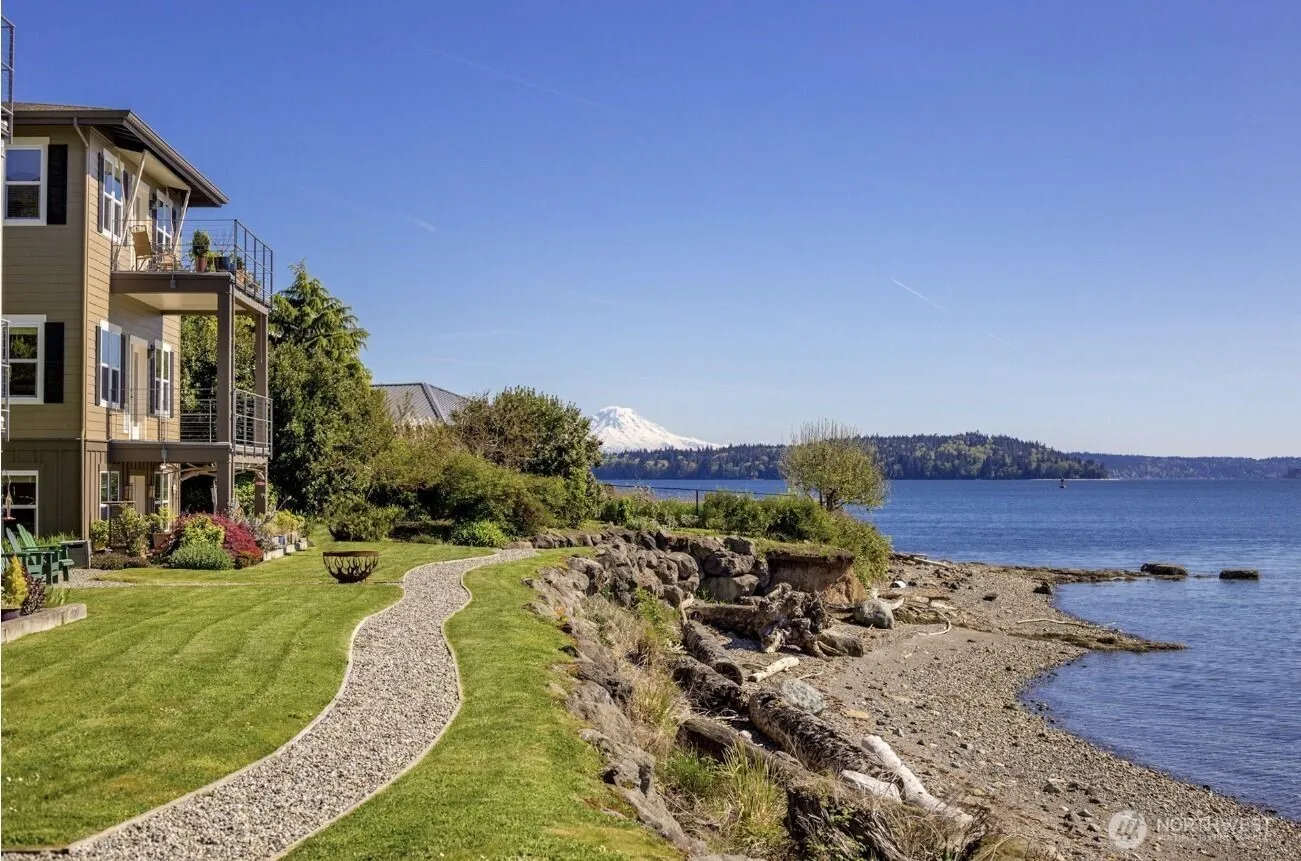 Discover a peaceful retreat w/ this immaculate condo on one of Bainbridge Island’s most scenic stretches. Nestled w/in a beautiful waterfront building, this condo offers coastal living, just steps to the water’s edge & Fort Ward Park. Launch kayaks, take in sunsets & savor the views of the Olympic Mountains & Puget Sound from your private shared beach & enjoy scenic waterfront walks. This single-level home offers abundant light, 10-foot ceilings, a gourmet kitchen w/ granite counter & ss appliances, cozy fireplace & spacious deck. The large primary suite boasts a luxurious 5-piece ensuite. Complete w/ a garage, elevator access, new carpet, fresh paint & urban amenities at Lynwood Center nearby, enjoy beauty w/ lock & leave convenience!