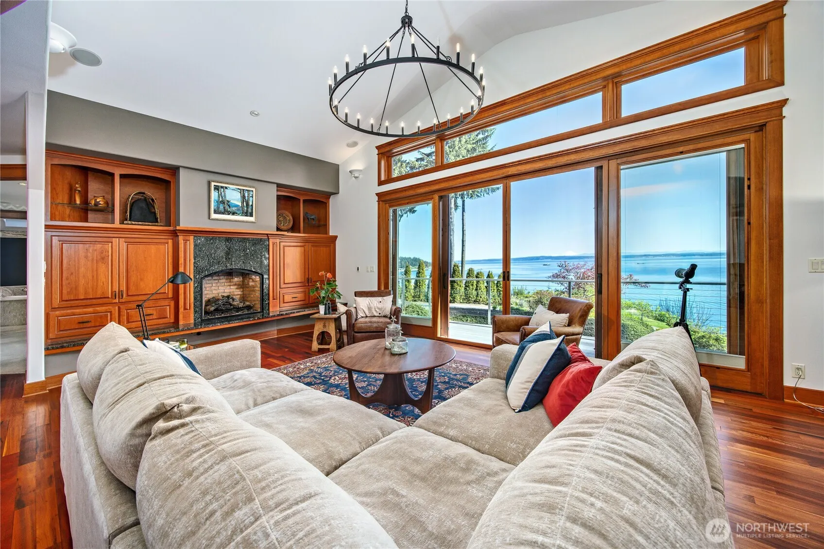 Surround yourself with stunning water and mountain views! This custom waterfront home was designed for the lot and offers a view from nearly every room. Carefully crafted by the area’s premier builder, the attention to detail and quality of finishes in this fine home can be appreciated by even the most discerning buyer. Main level living with a wall of windows and doors that open to the deck and water. Two ensuites on the main include a guest suite and a primary suite with a huge walk-in closet, separate vanities, a walk-through shower and soaking tub. A second kitchen and lounge space offer guests both privacy and luxury. Lush grounds with walkways, patio and firepit plus all Port Ludlow amenities. Ask about available Seller financing.